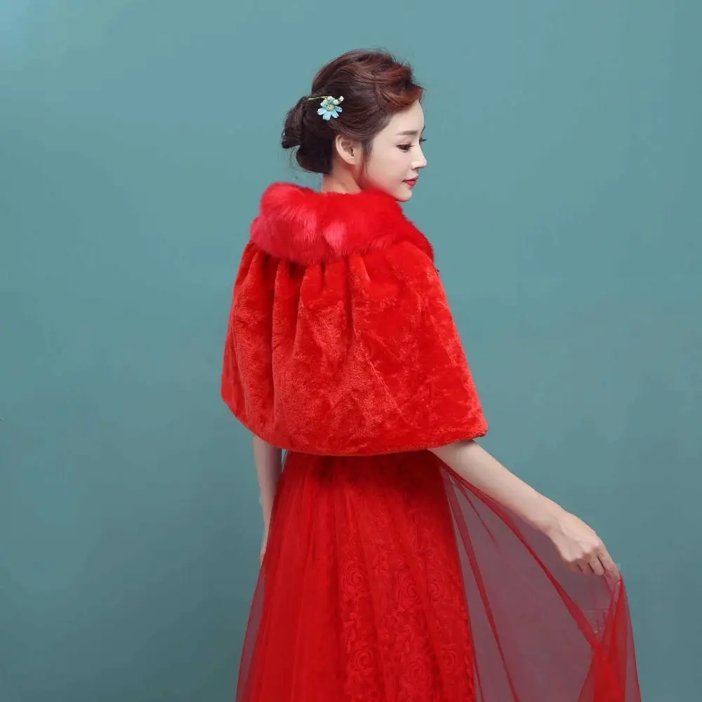Stola avvolgente in peluche addensata invernale da donna, lunghezza al gomito, scialle da sposa, mantello, giacca calda, coprispalle con fiocco in nastro con lacci