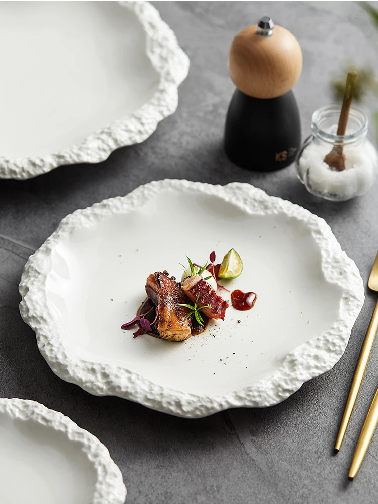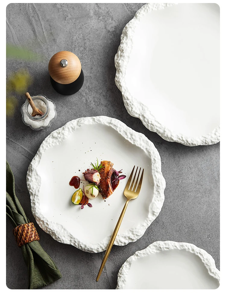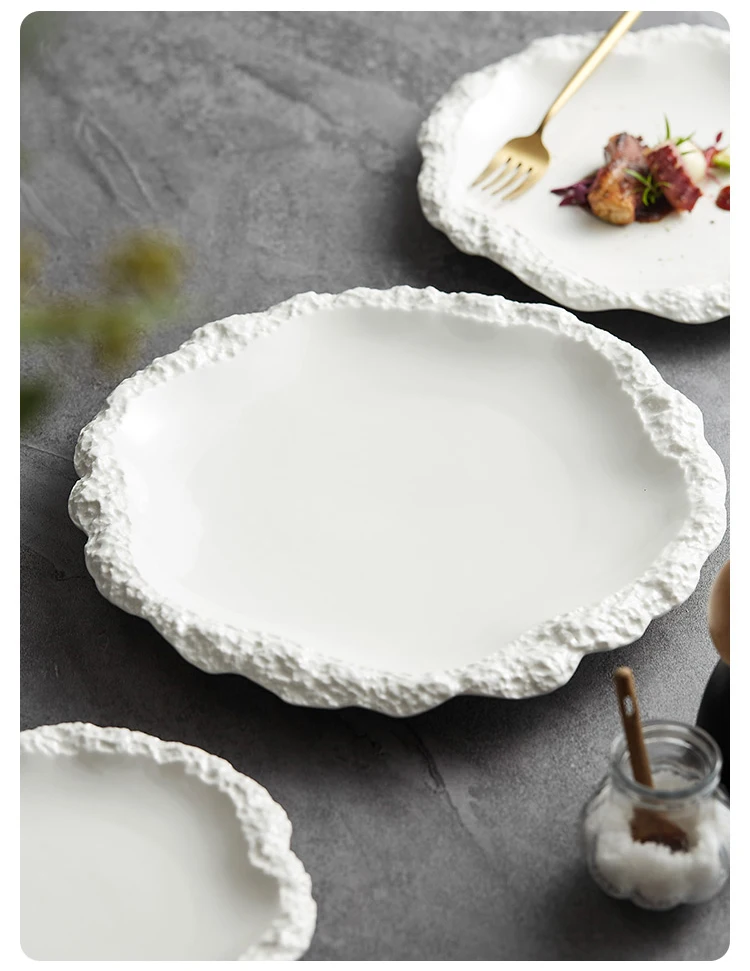 Stoviglie semplici in tinta unita piatto da bistecca in ceramica per Pasta piatto da pranzo cucina creativa vassoio da portata di forma irregolare piatti da cucina