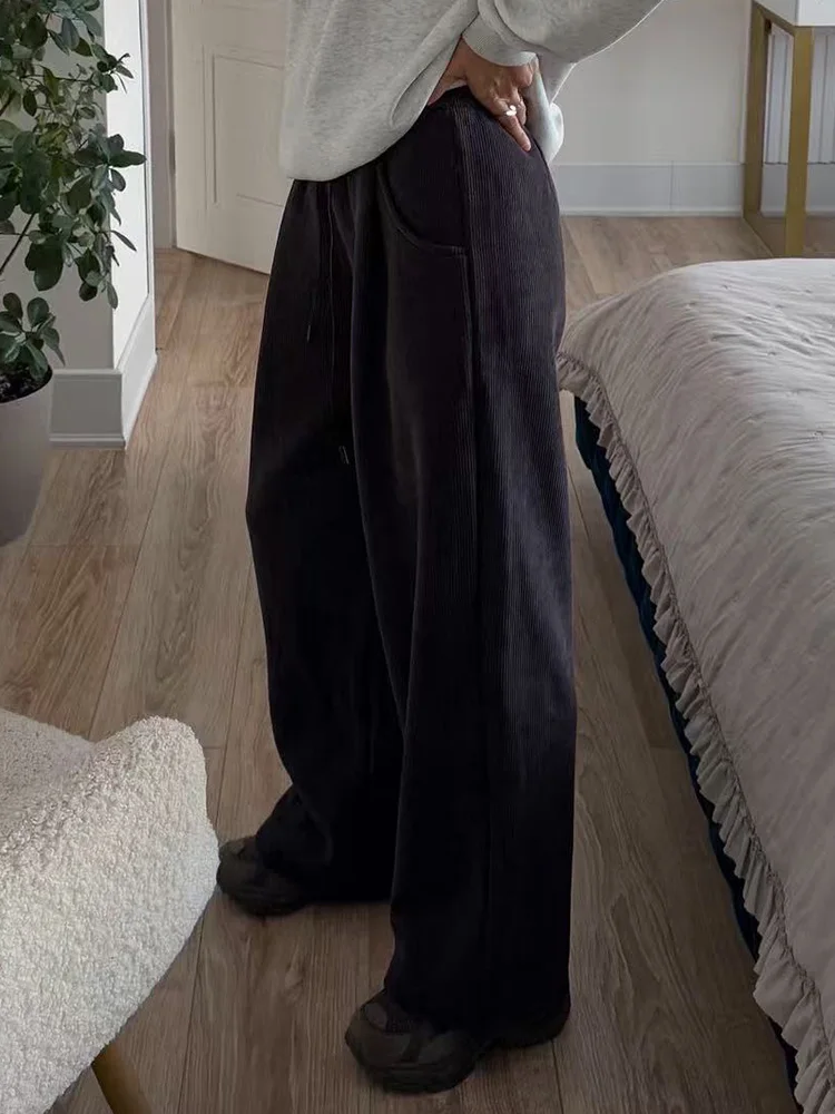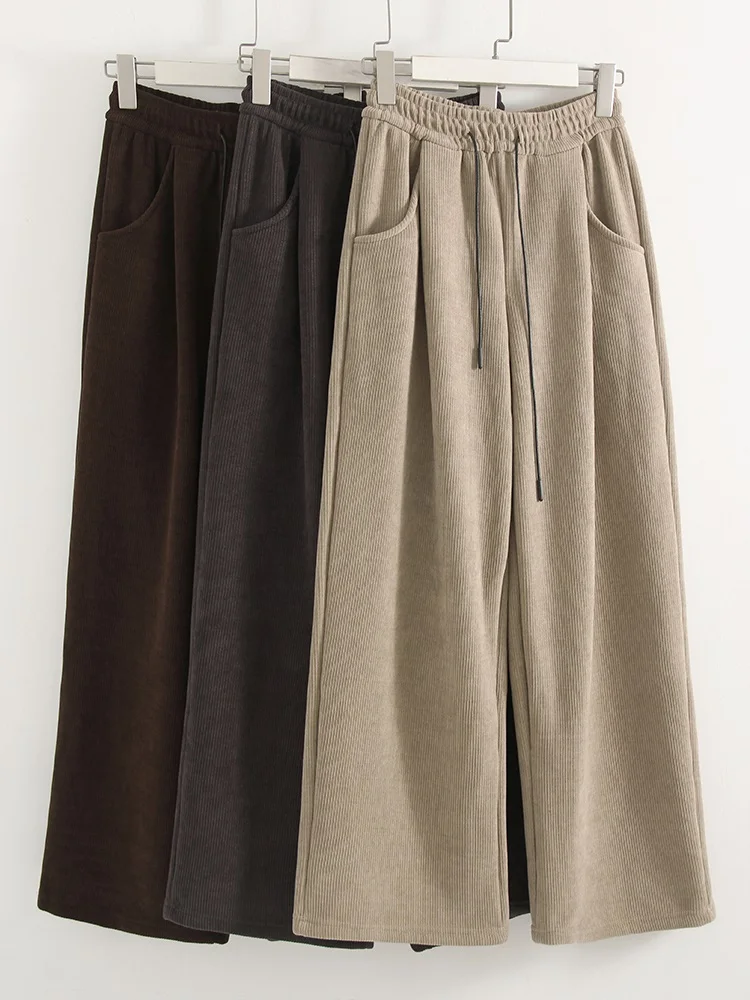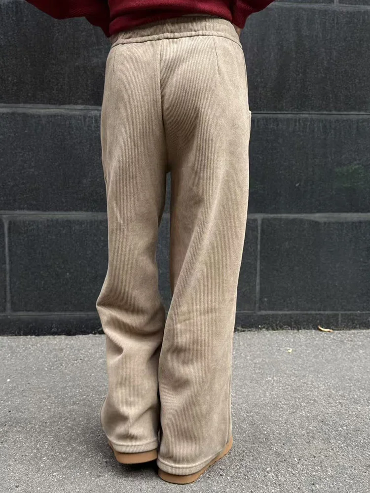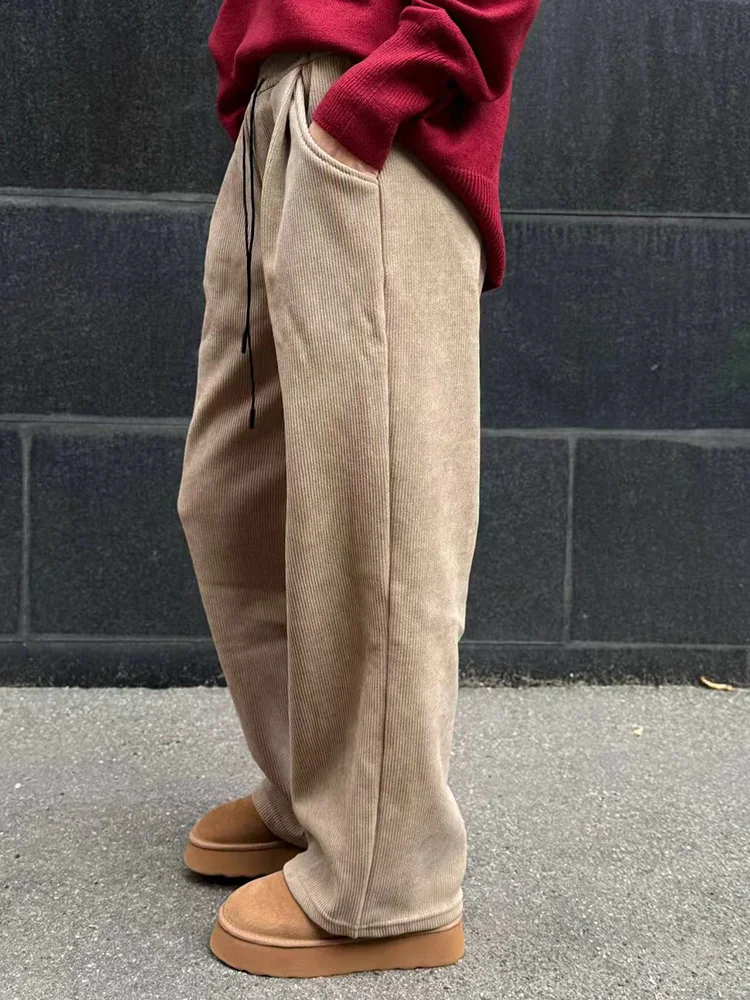Streamgirl Pantaloni invernali in velluto a coste da donna Marrone scuro con pantaloni in pile spesso caldo Pantaloni larghi a vita alta in velluto a coste per le donne
