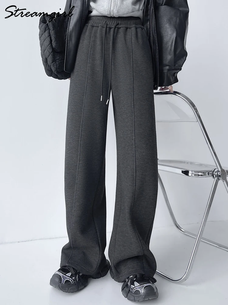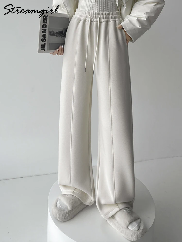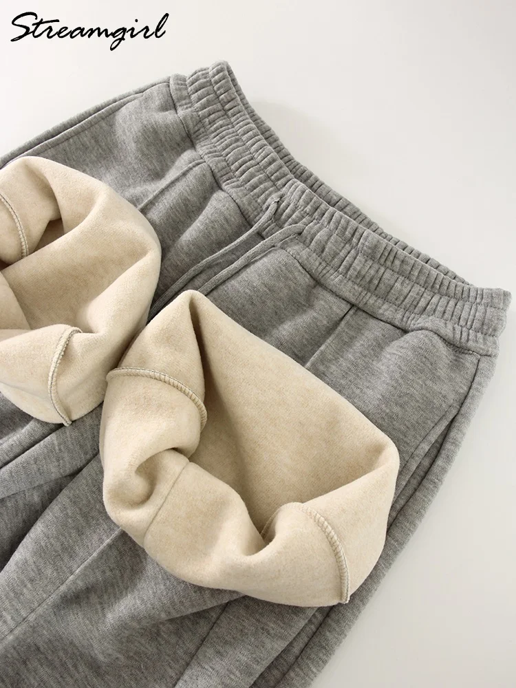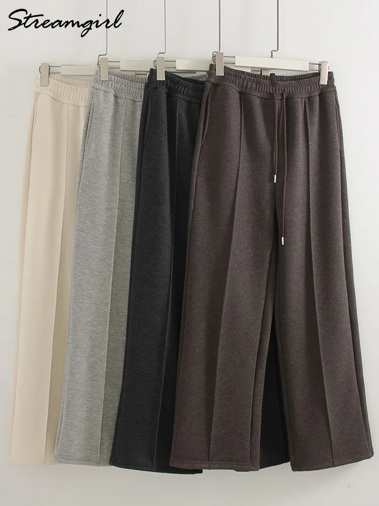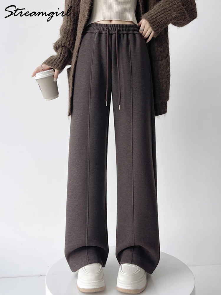 Streamgirl Pantaloni invernali spessi e caldi per le donne Pantaloni in pile marroni Pantaloni invernali da donna a vita alta a gamba dritta Ufficio caldo