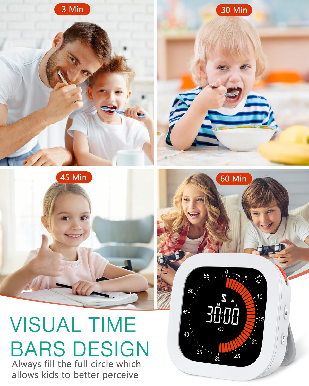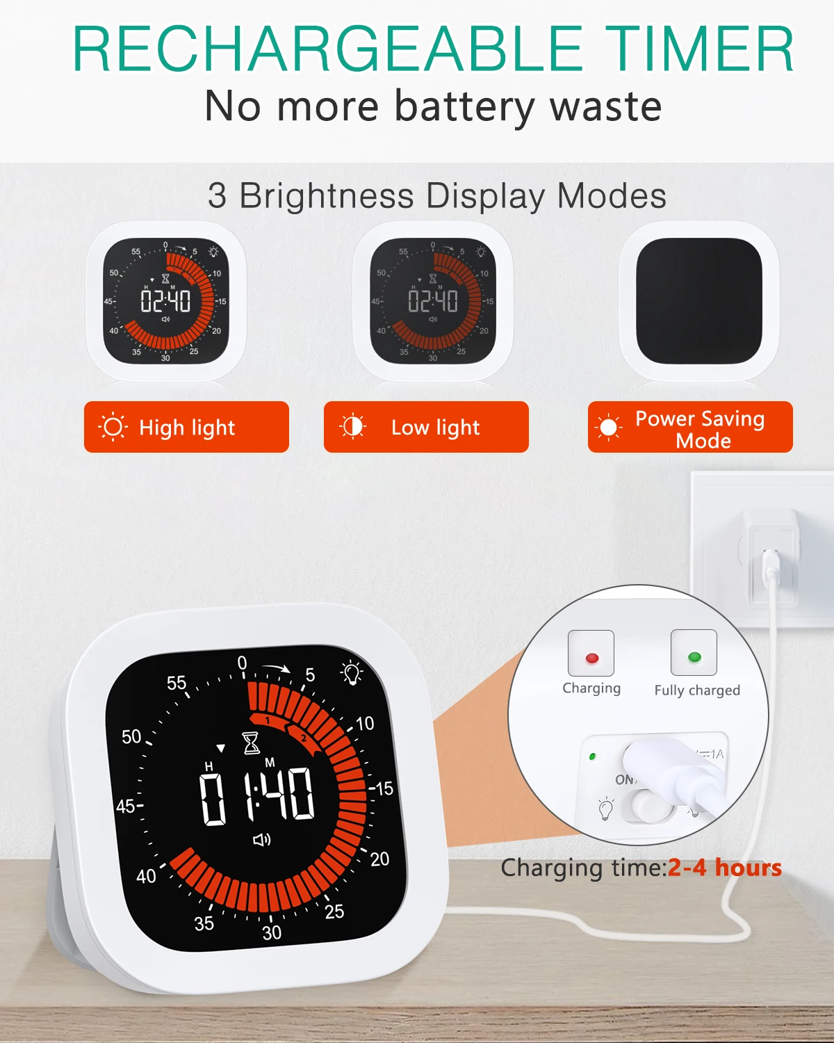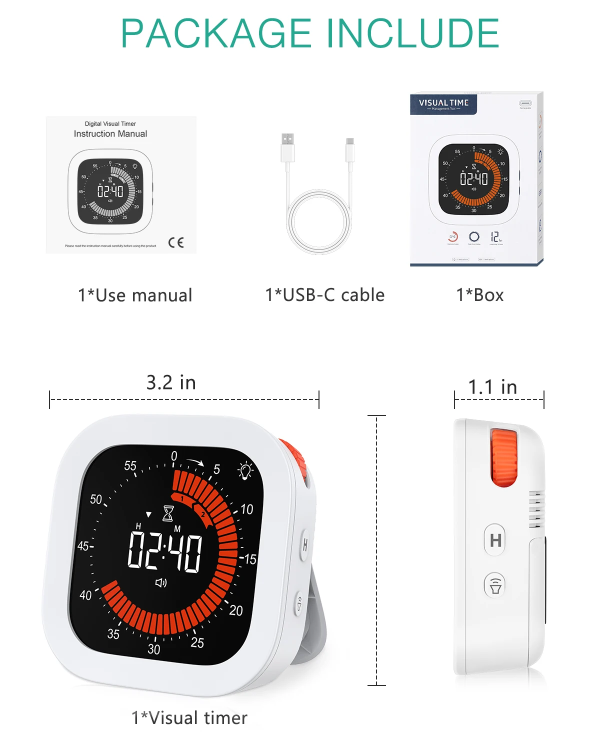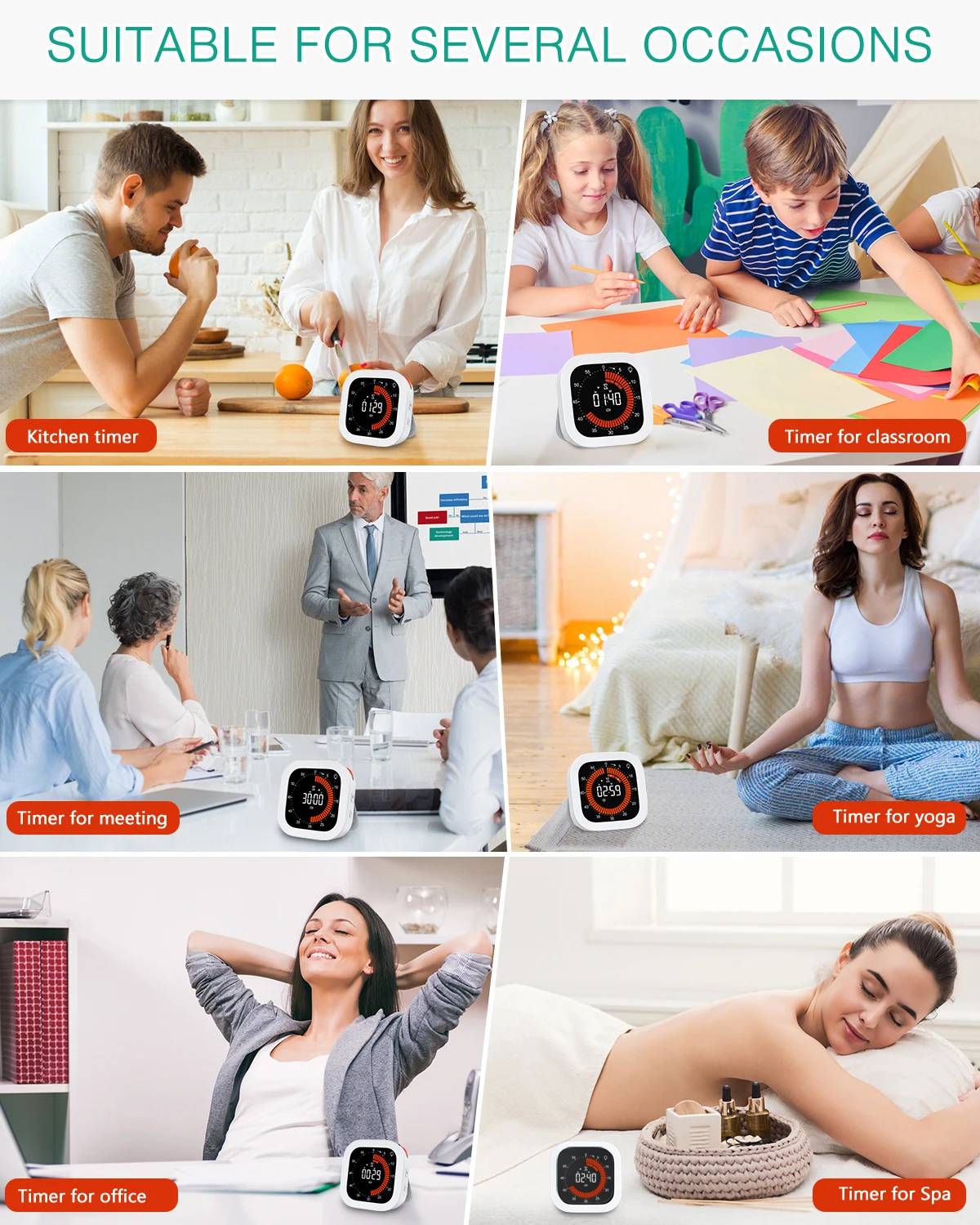 【Silent No Ticking】: Il timer per il conto alla rovescia visivo funziona silenziosamente, eliminando il suono annodante che può essere distratta.Questo consente di concentrare completamente sulle tue compiti, adatto per ambienti dove è tranquillo, come riunioni, sessioni di studio o camere da letto.