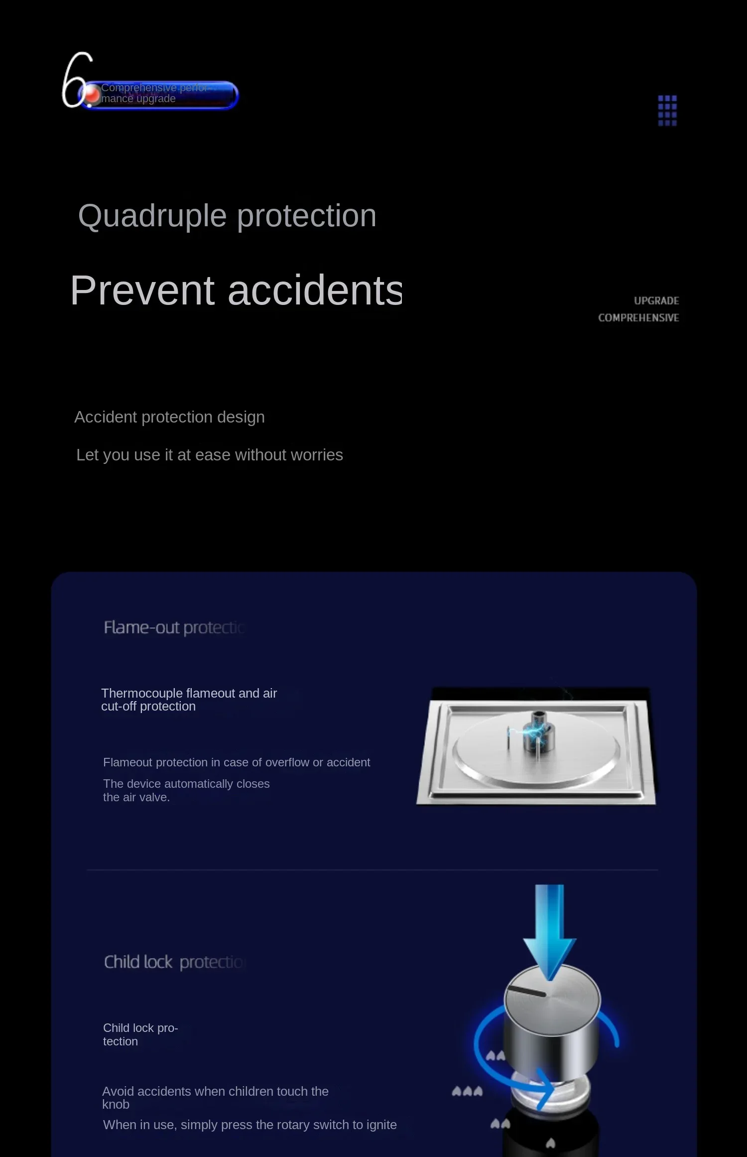 | Flameout protection device | Thermocouple flameout protection |
