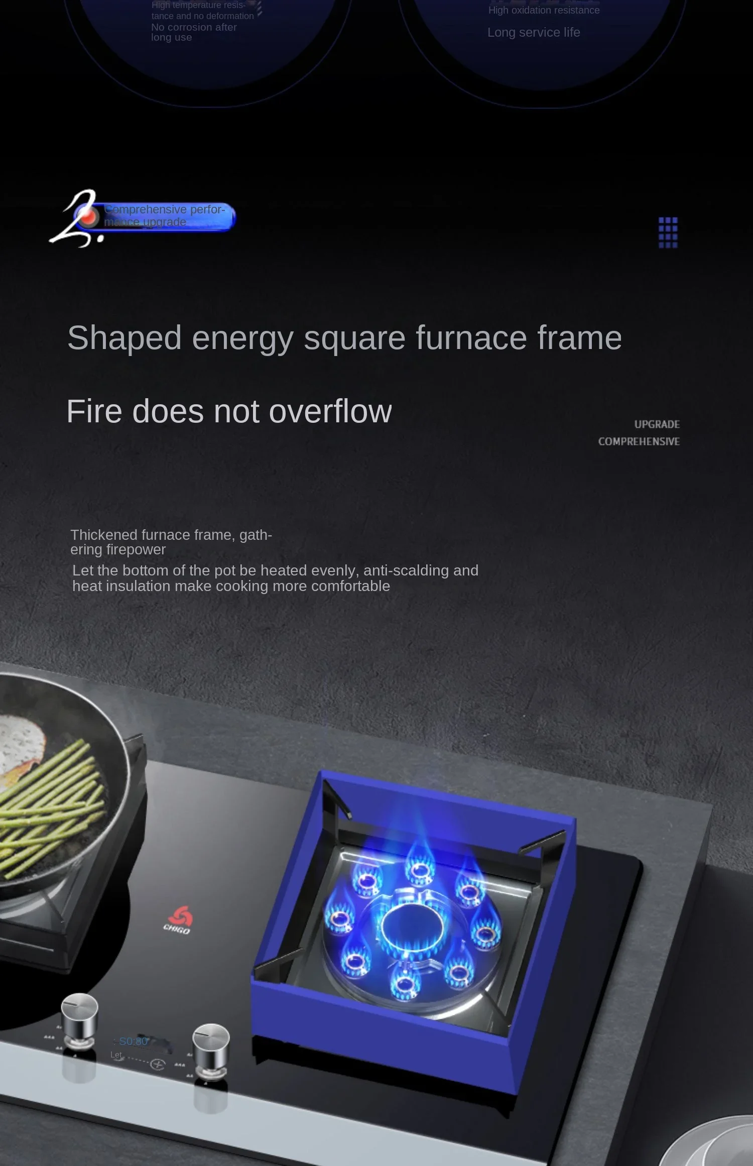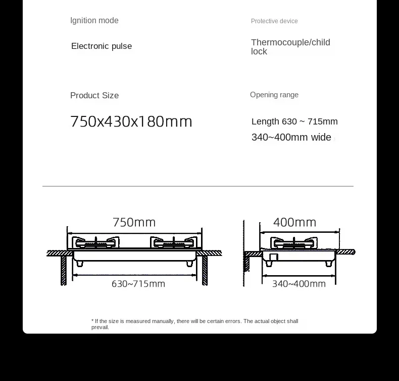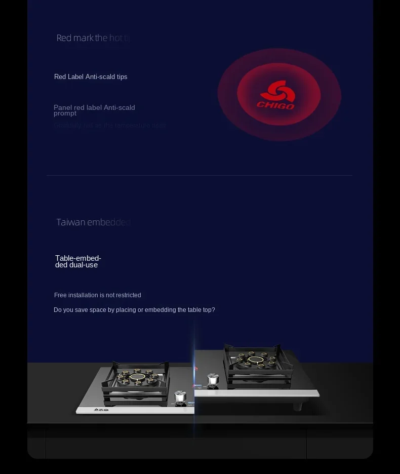 Stufa a gas Chigo Stufa GPL a gas naturale incorporata a doppio fuoco con design incorporato per uso domestico AD