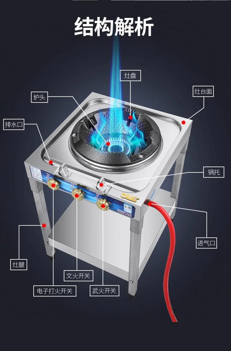 Stufa a gas commerciale Bruciatore singolo Fiamma forte ad alta pressione con protezione antincendio AK