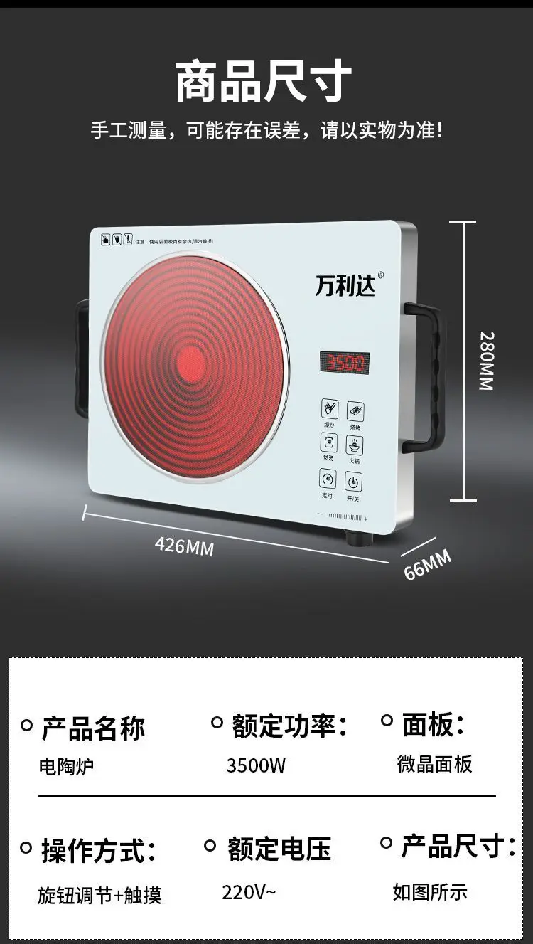 Stufa elettrica per ceramica per uso domestico 3500 multifunzionale a risparmio energetico e friggere senza raccogliere pentole e friggere 1Stufa elettrica per ceramica per uso domestico 3500 multifunzionale a risparmio energetico e friggere senza raccogliere pentole e friggere