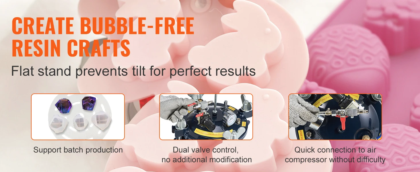 VEVOR offre un vaso a pressione ideale che può essere utilizzato per prodotti in resina e è perfetto per creare pezzi di resina che necessitano di spruzzatura.Il design a doppia valvola elimina la necessità di modifica manuale e garantisce un pezzo perfetto in resina con le bolle.
