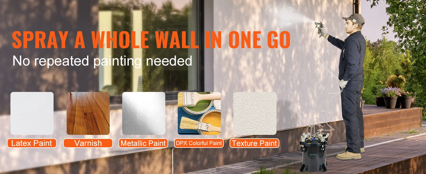 Dipingi quello che vuoi: il nostro vaso a pressione epossidica è versatile e adatto sia per la decorazione domestica e la verniciatura a spruzzo industriale.Una persona può completare facilmente compiti di verniciatura a spruzzo su decorazioni per la casa, pareti, recinzioni, veicoli da costruzione, navi e altro.Può essere utilizzato con vernici comuni come vernice lattice, pittura sabbiosa a base d’acqua e pittura metallica.Il supporto inferiore del serbatoio di verniciatura a pressione può essere montato con rotelle mobili o fissato nel posto secondo le tue esigenze.