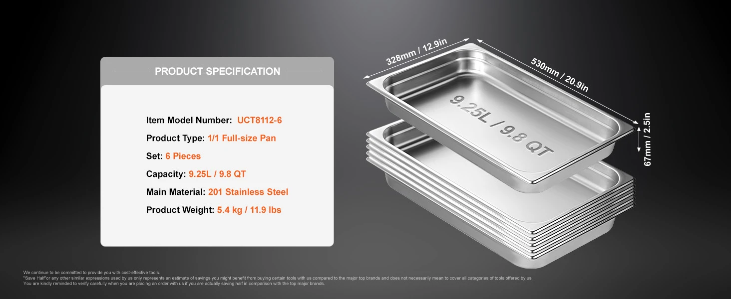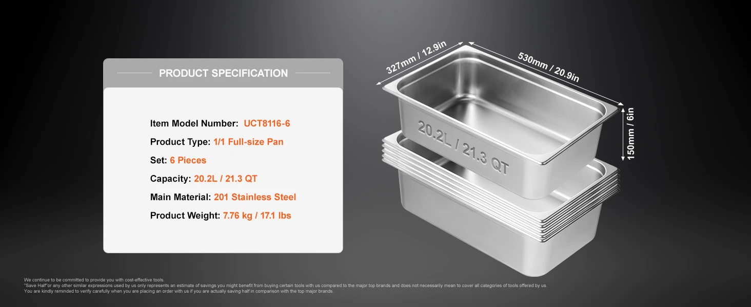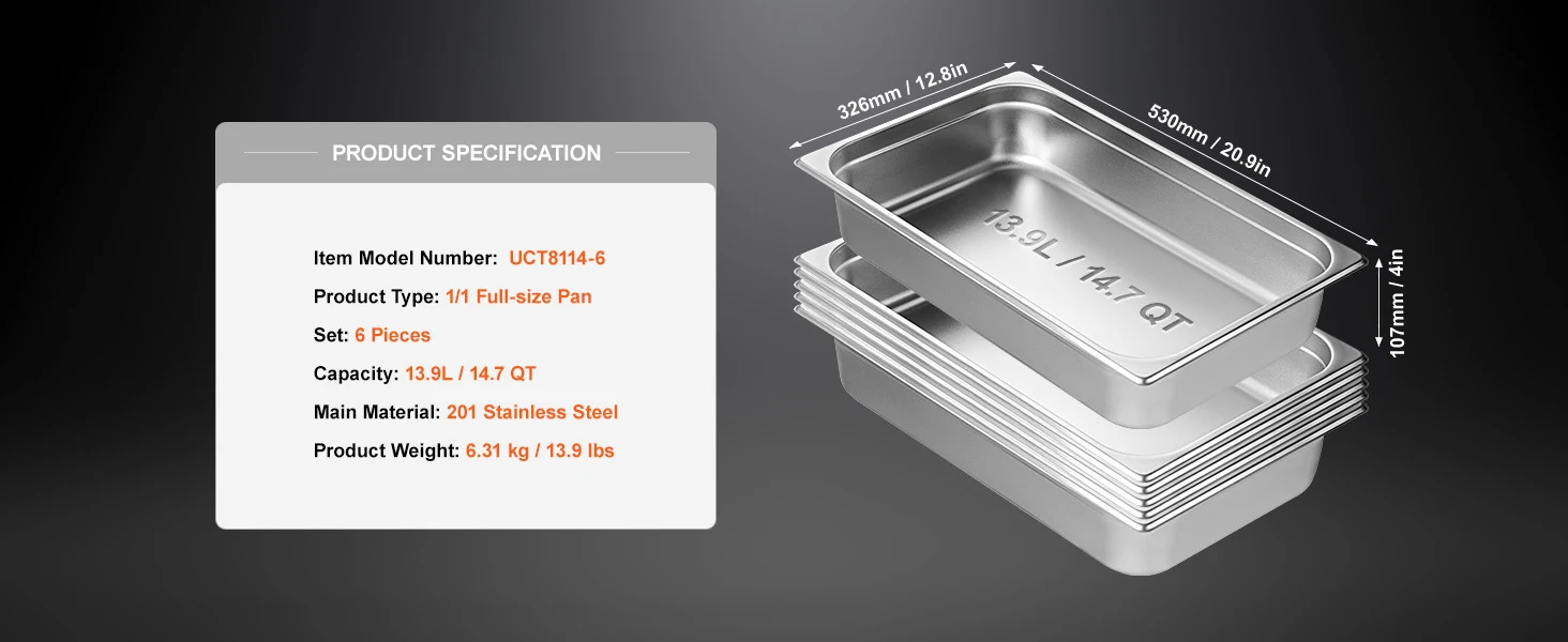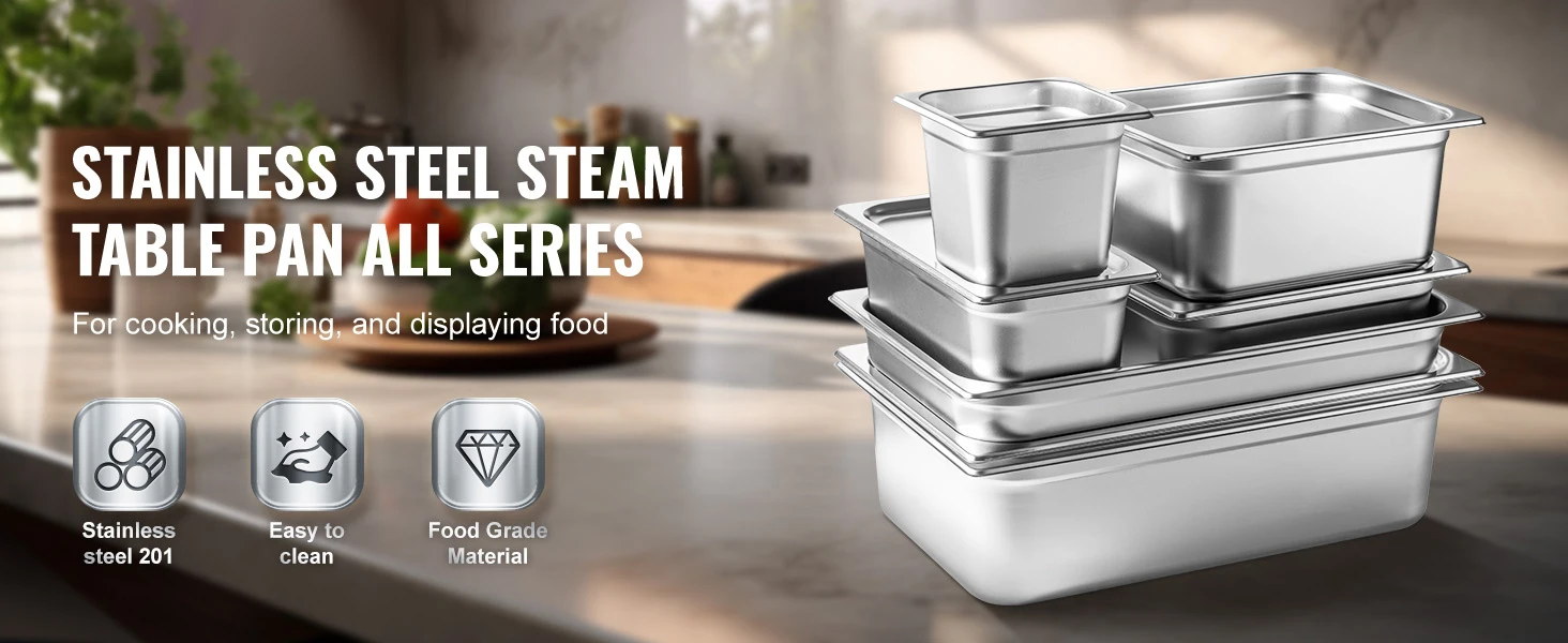Padella da tavolo a vapore di dimensioni standard: confezione da 6 padelle da tavolo a vapore di dimensioni standard con coperchio, realizzate in acciaio inossidabile SUS201 per uso alimentare.Puoi utilizzare queste padelle per contenere varie carni, verdure, frutta, gelati e qualsiasi altro cibo.I coperchi aiutano a proteggere il cibo dalla contaminazione.