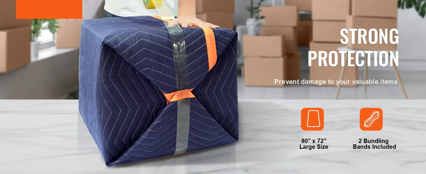 Wrap It Up in a Snap: questa grande coperta mobile per carichi pesanti da 80″ x 72″ ha hai coperto, letteralmente!Il pacchetto viene fornito con due pratiche fasce elastiche, perfette per imballare i tuoi mobili e opere d’arte come un professiono.
