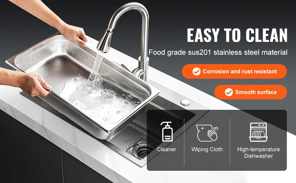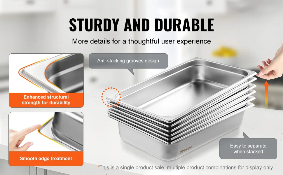 Robusta e durevole: la nostra padella a vapore per hotel è realizzata in acciaio inossidabile spesso 0,8 mm, che la rende robusta, durevole e resistente alla ruggine.L’esclusivo design della scanalatura anti-impilamento migliora la resistenza strutturale, rendendo la padella più robusta e facile da separare quando impilata.