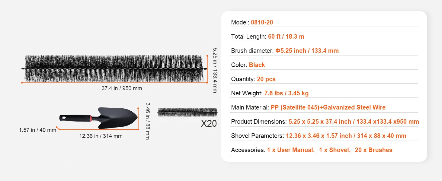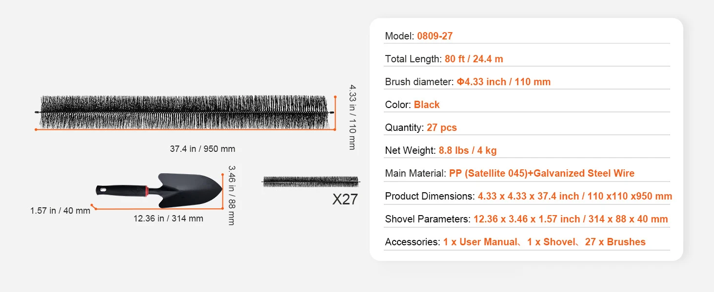 Protezione per grondaie tutto l’anno per qualsiasi clima: la spazzola per grondaie è realizzata con setole in polipropilene di livello professionale e un’anima in filo di acciaio zincato per carichi pesanti.Può resistere a vari elementi naturali senza arrugginire o corrodersi, indipendentemente dalla stagione o dal clima.