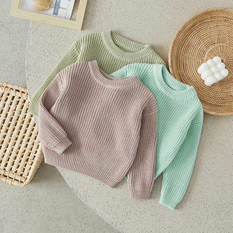 Suefunskry Neonato Ragazza Ragazzo Lavorato A Maglia Manica Lunga Autunno Inverno Maglione Solido Allentato Pullover Casual Magliette E Camicette Abbigliamento Per Bambini 0-5Y