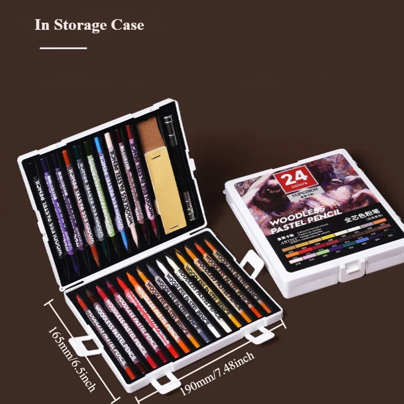 SUPCRIOR-Matite pastello senza legno 24 colori 7mm Core Artista Grado Gesso Matita a carboncino Grande miscelazione Stratificazione Schizzi in custodia