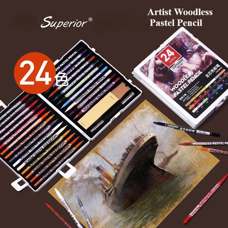 SUPCRIOR-Matite pastello senza legno 24 colori 7mm Core Artist Grado Gesso Matita a carboncino Ottima miscelazione Schizzi a strati nella custodia