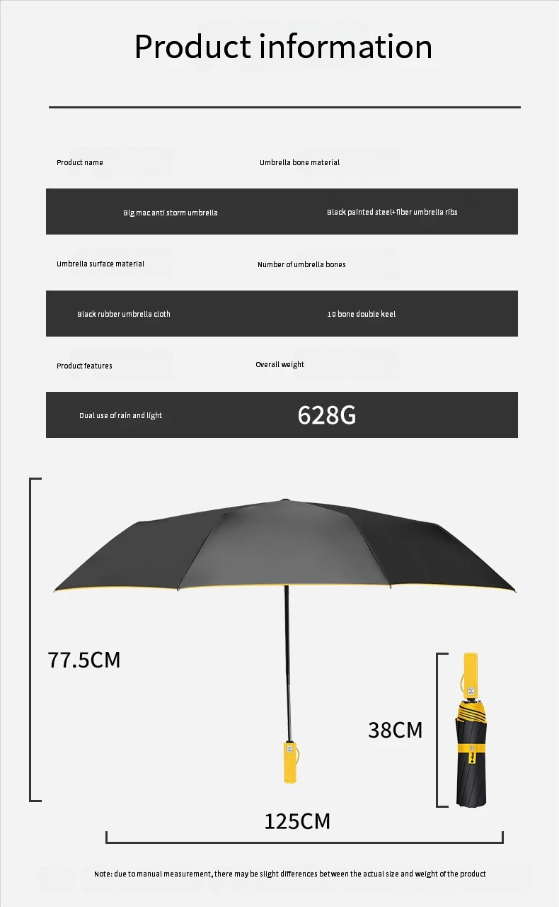 1 recensione per Superficie per ombrellone super grande a doppio strato tripla piega da 125 cm più produttore di ombrelli pieghevoli da uomo con protezione solare in vinile