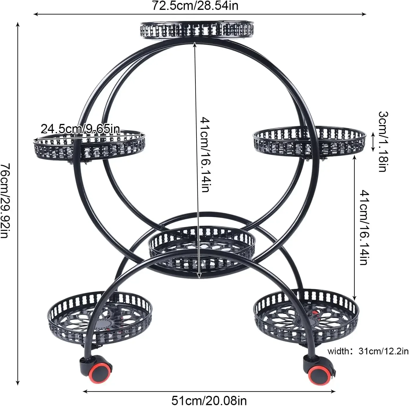 Ogni spazio di livello laterale: 41 cm/ 16,14 pollici