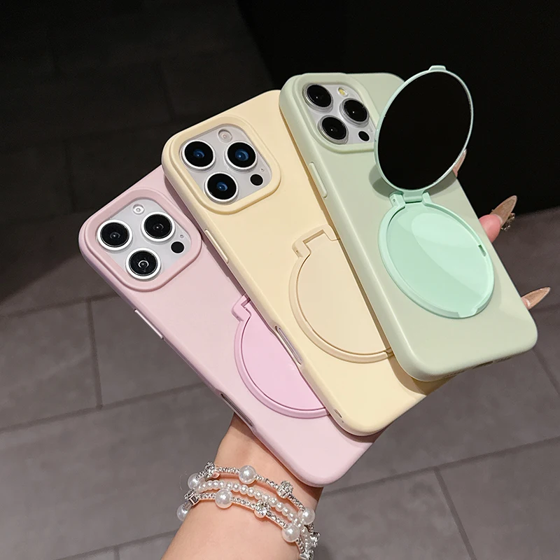 Supporto per telefono con specchio per trucco adesivo Flip 2025 Nuovo supporto da tavolo Base adesiva Accessori posteriori Specchio in vetro ad alta definizione