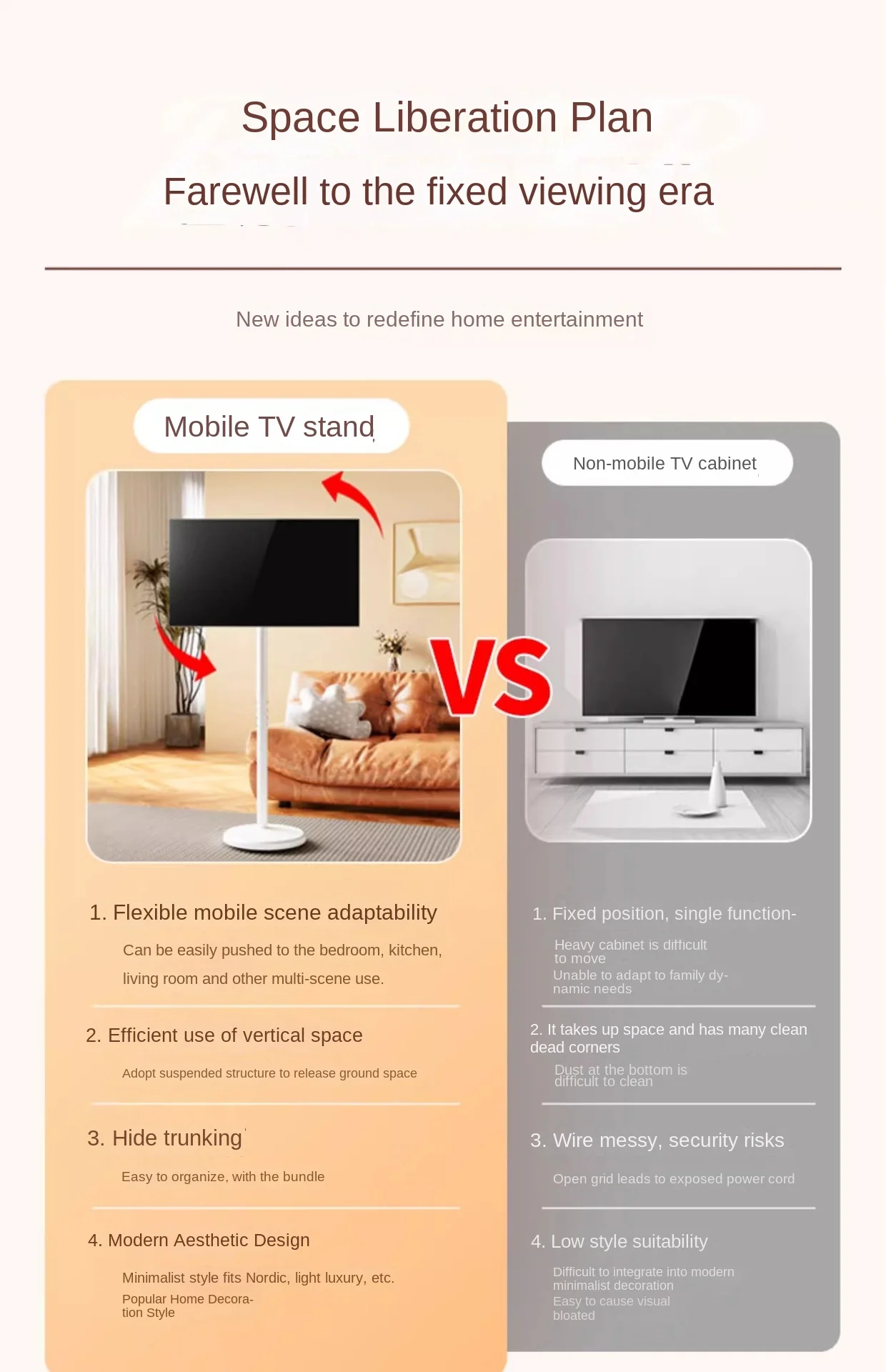 Supporto TV mobile bianco supporto per computer supporto per monitor verticale supporto per schermo espositore da pavimento