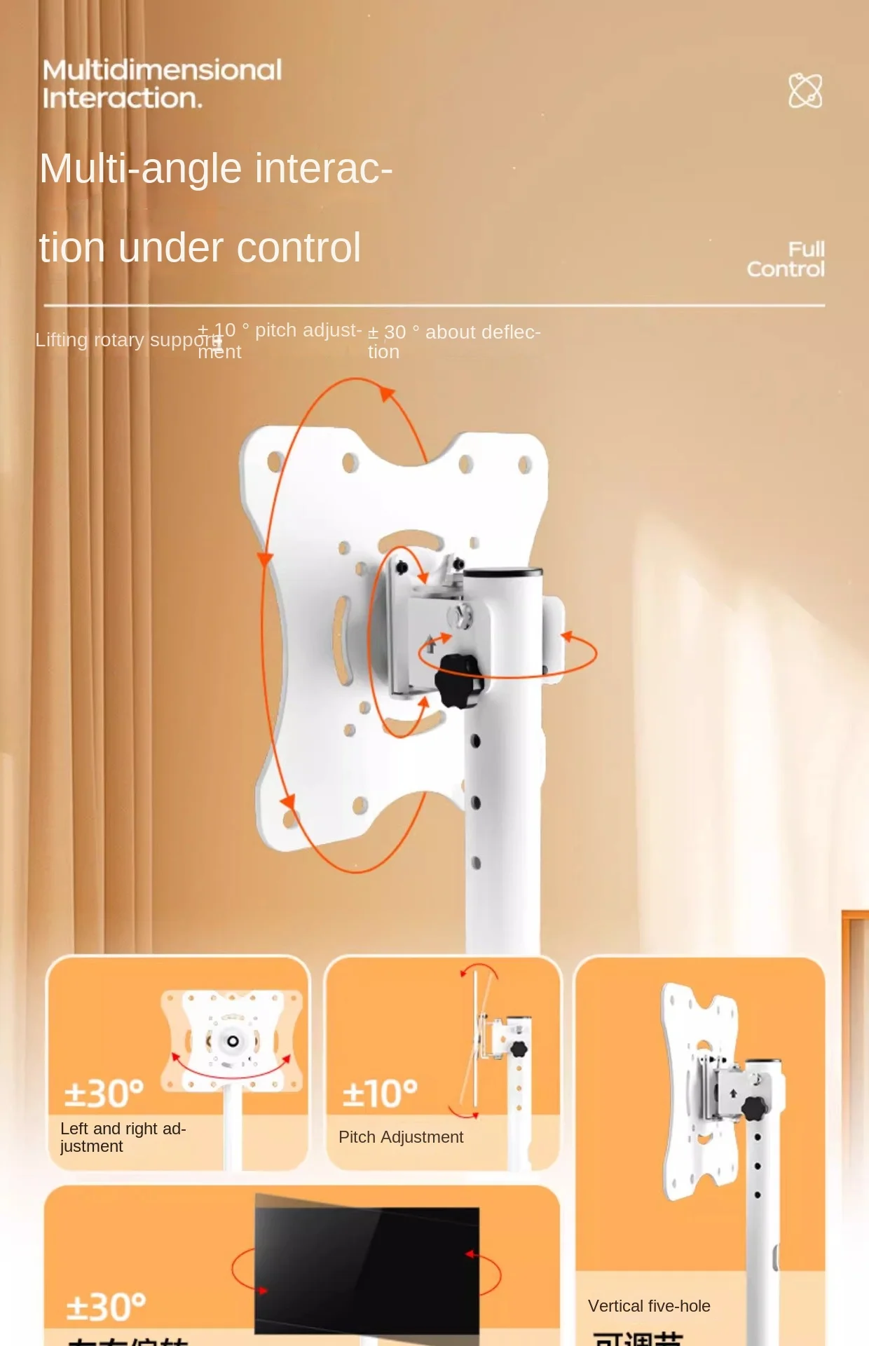 Angoli sinistro e destro:+30~-30 * angolo di passo -7 *~+10 ° . Il pannello può ruotare 360 °