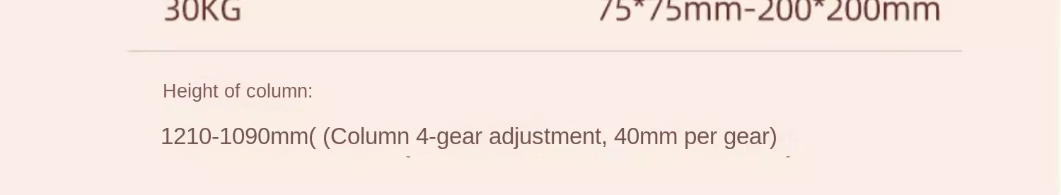 Spaziatura dei fori adatta: 75 * 75-200 * 200 mm