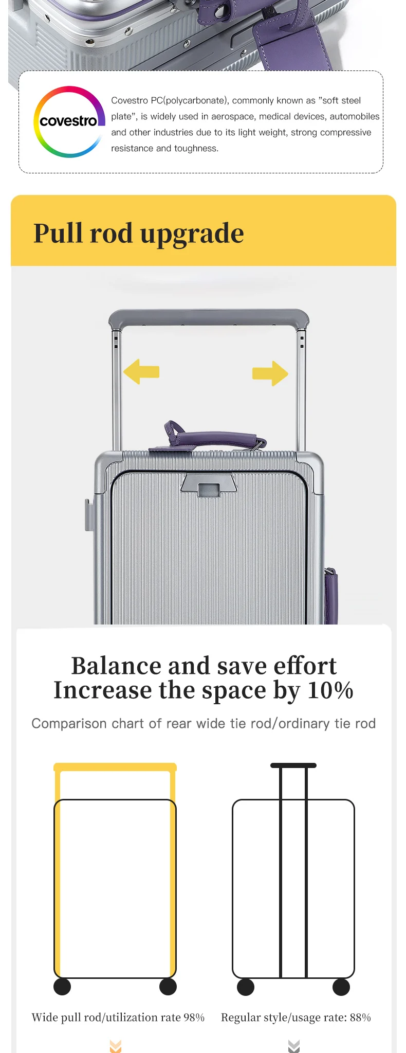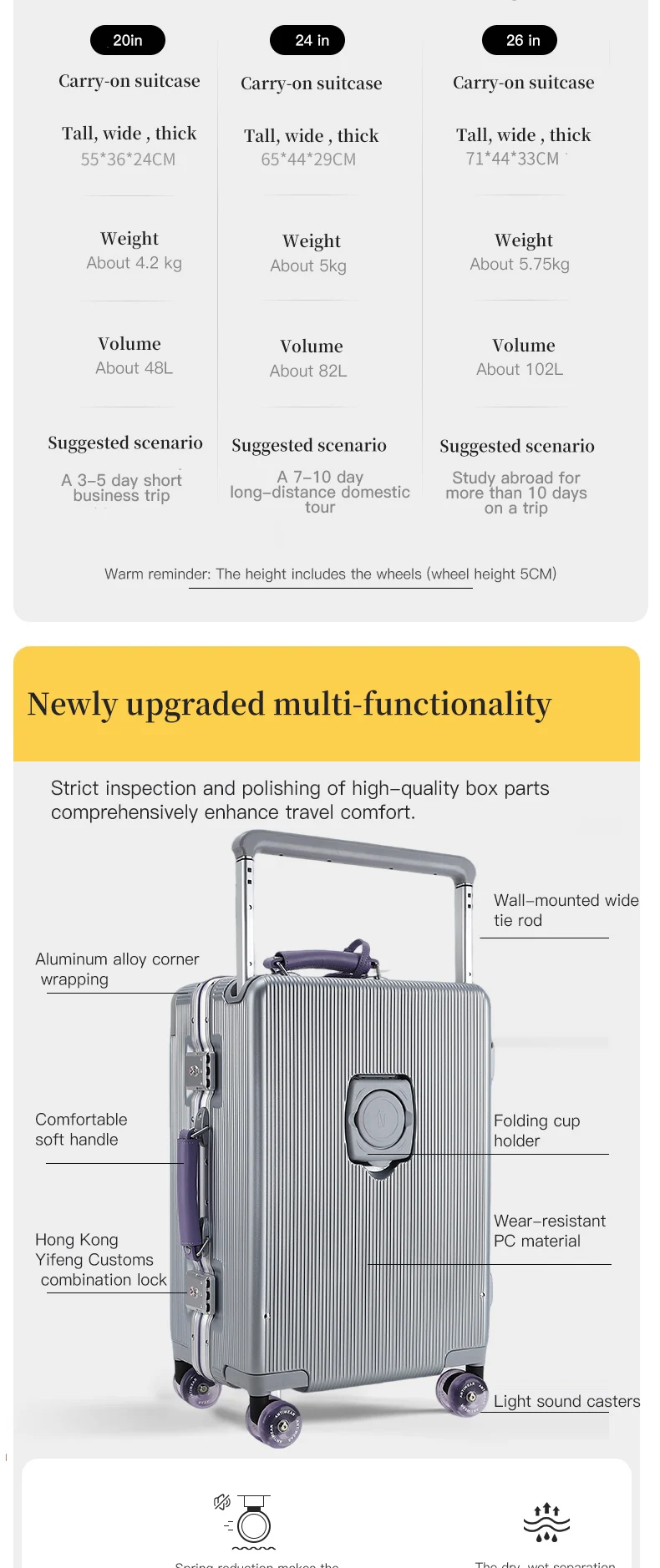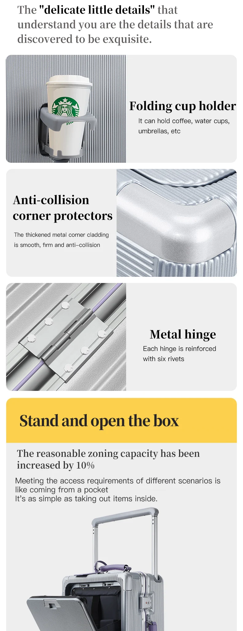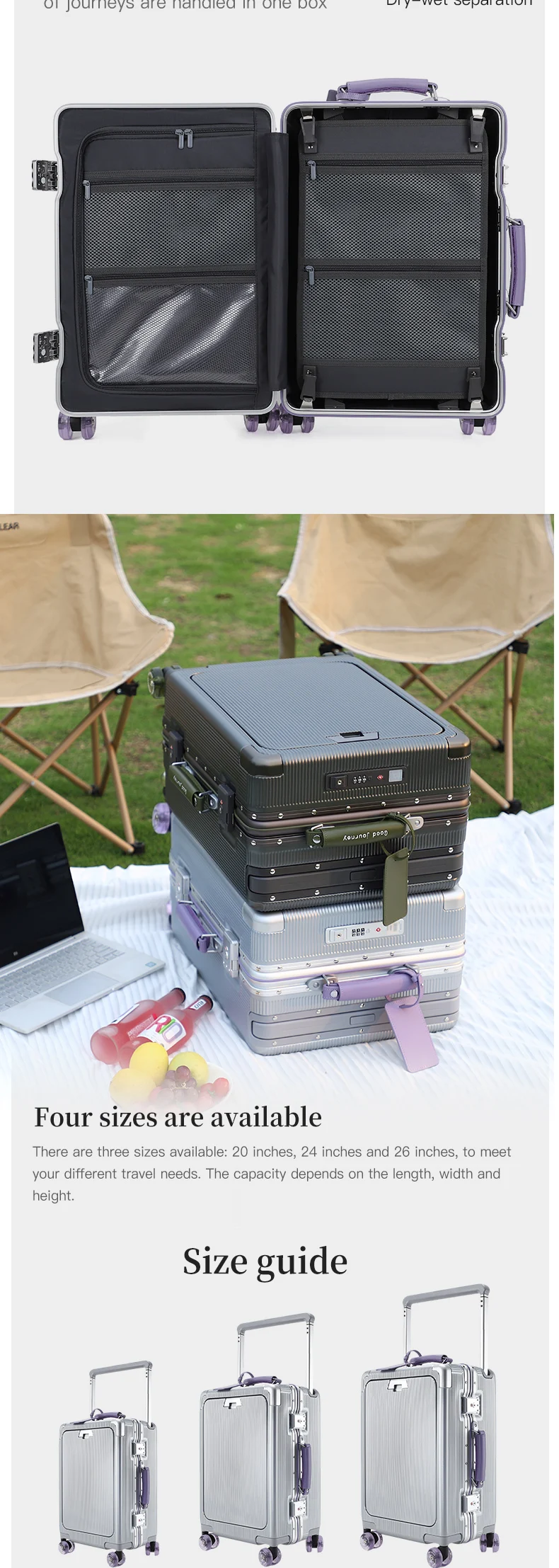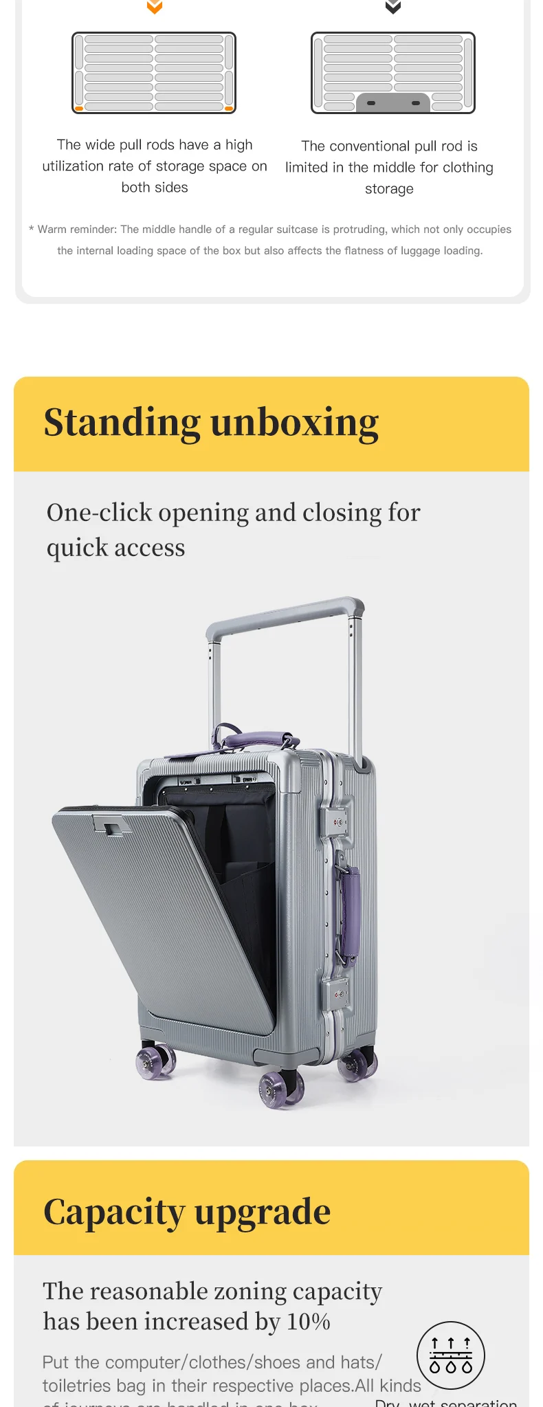 Questa valigia ha due cerniere e apre uno dei loro possono aumentare la capacità del 20%