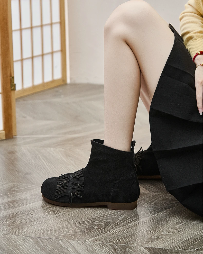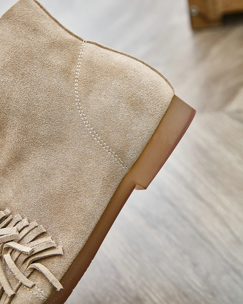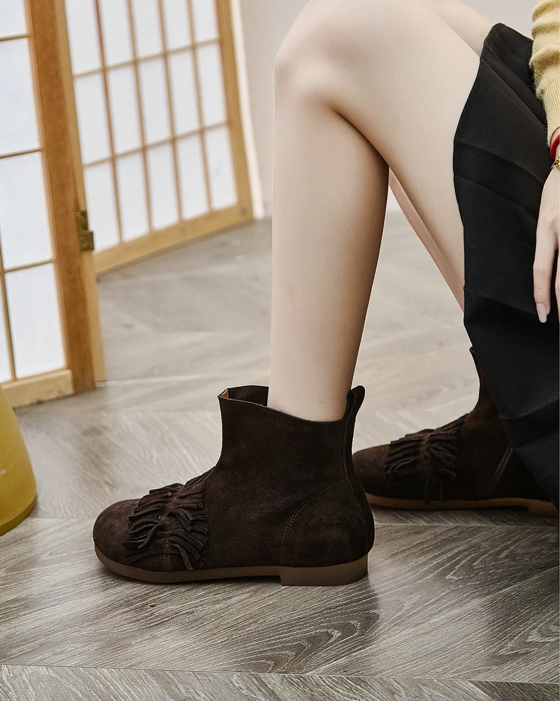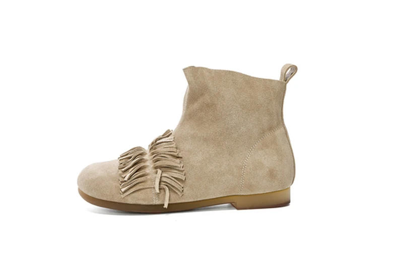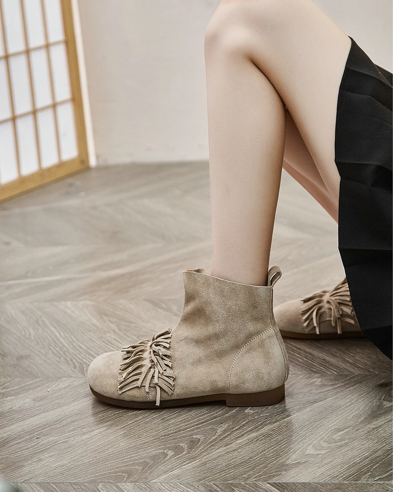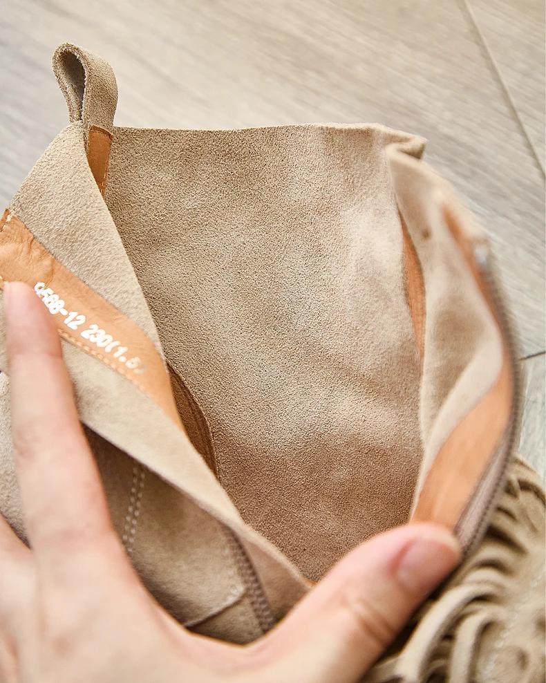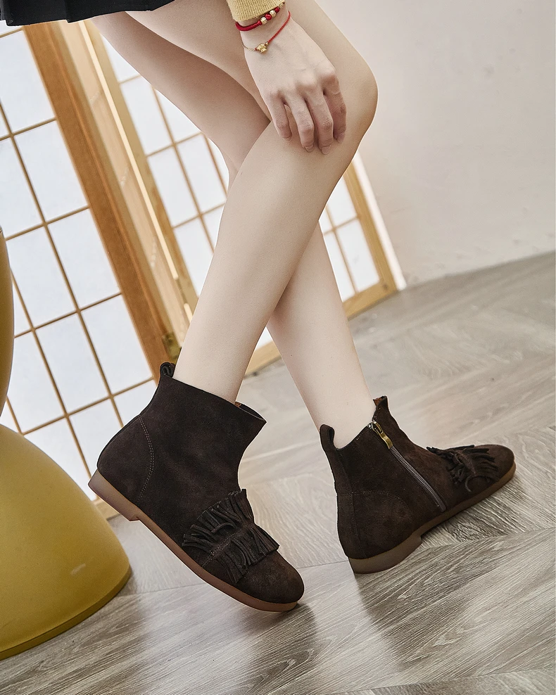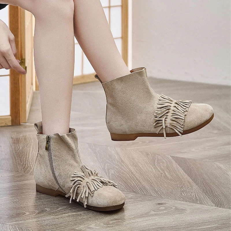 SXMMLJ Stivaletti alla caviglia britannici in pelle scamosciata di mucca da 2 cm Tacchi grossi Donna Autunno Moto Scarpe primaverili in vera pelle ZIP Moda