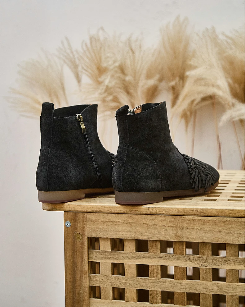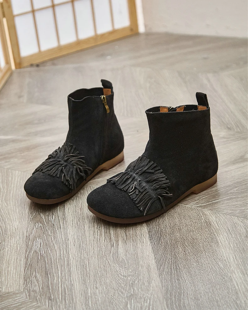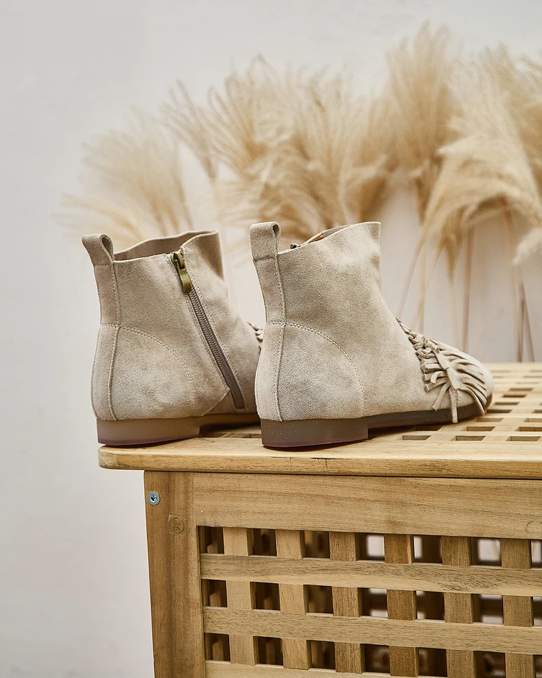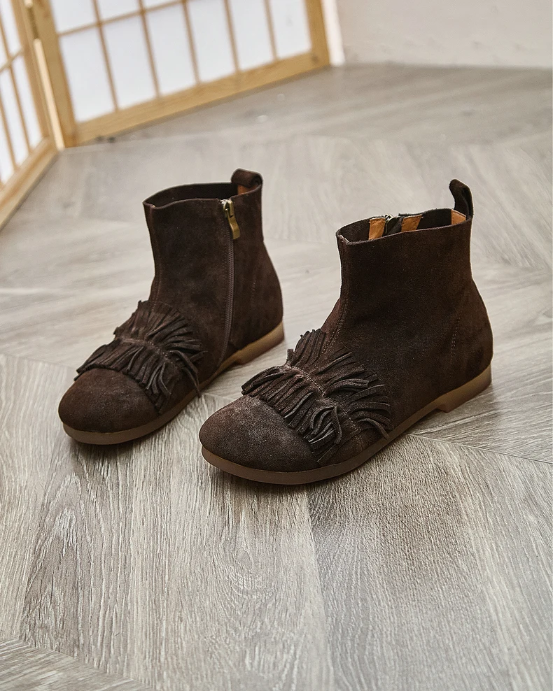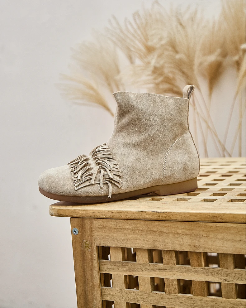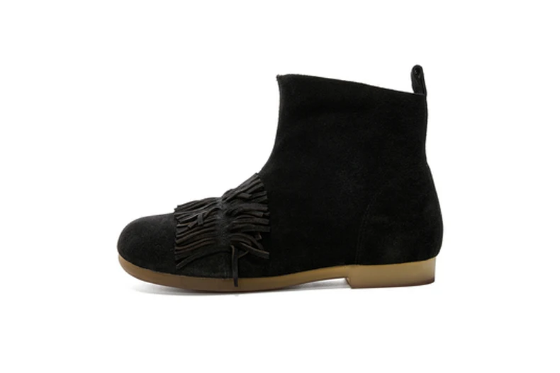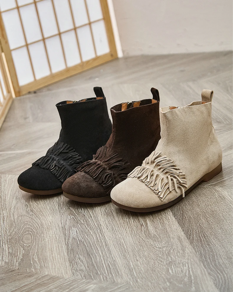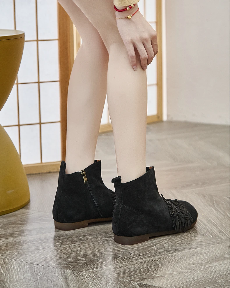 SXMMLJ Stivaletti alla caviglia britannici in pelle scamosciata di mucca da 2 cm Tacchi grossi Donna Autunno Moto Scarpe primaverili in vera pelle ZIP Moda