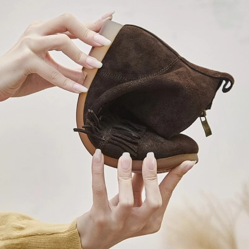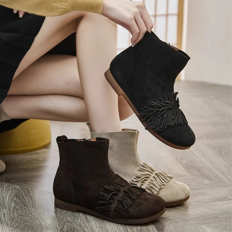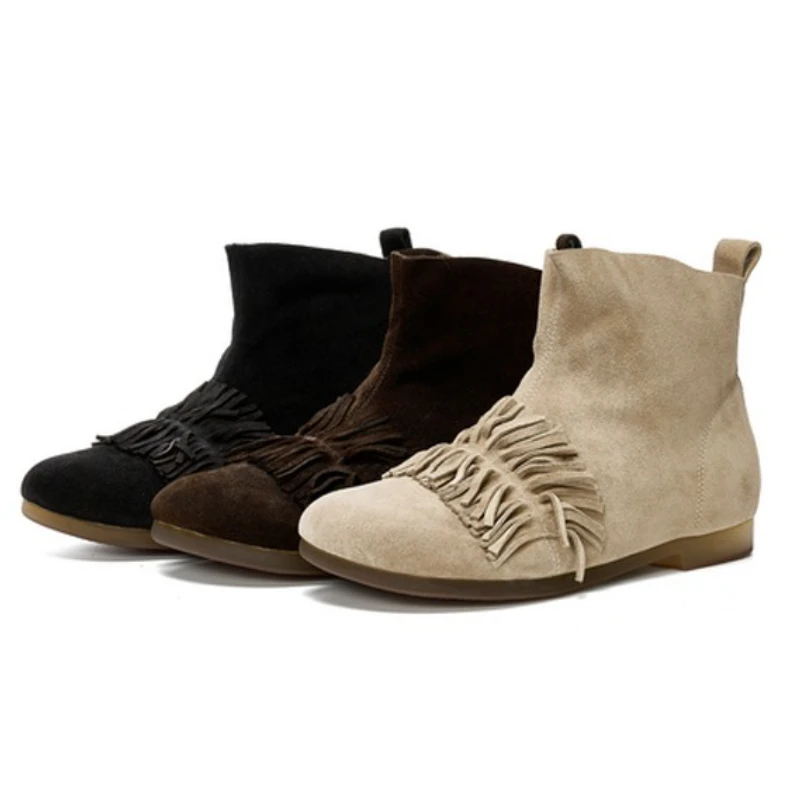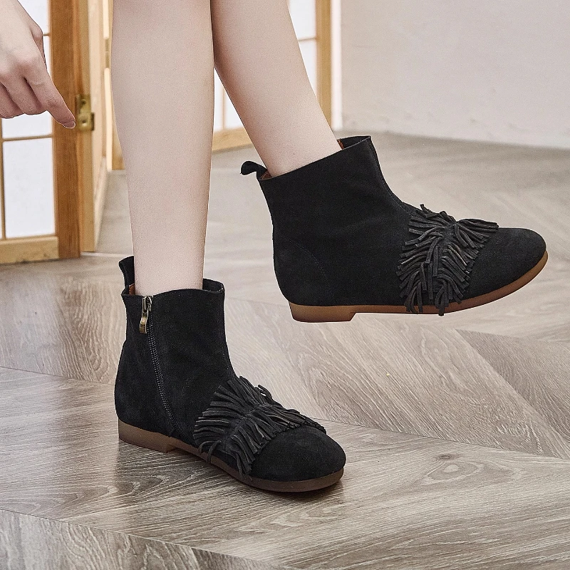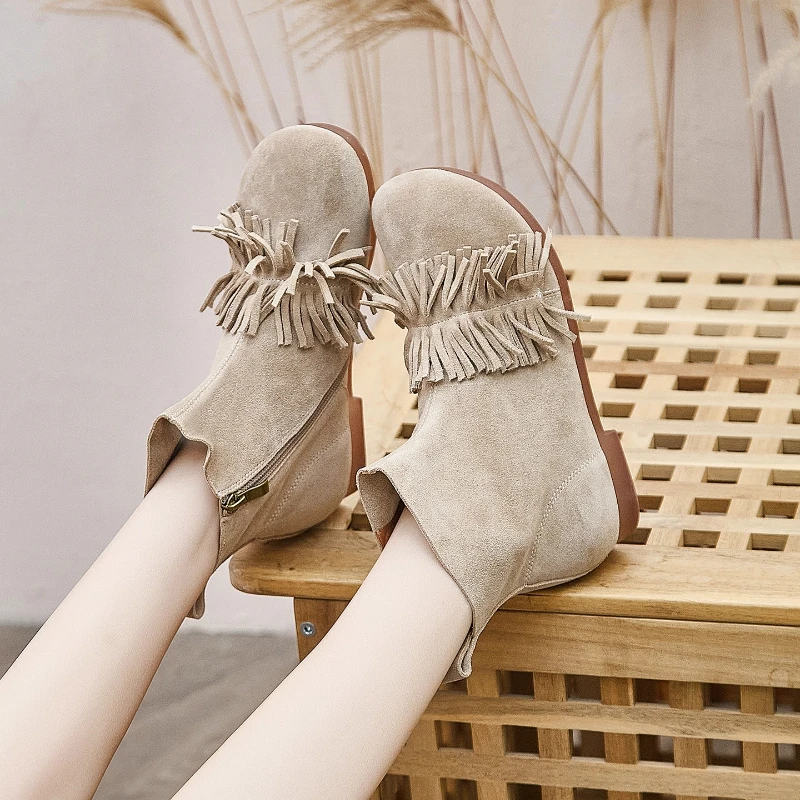 SXMMLJ Stivaletti alla caviglia britannici in pelle scamosciata di mucca da 2 cm Tacchi grossi Donna Autunno Moto Scarpe primaverili in vera pelle ZIP Moda