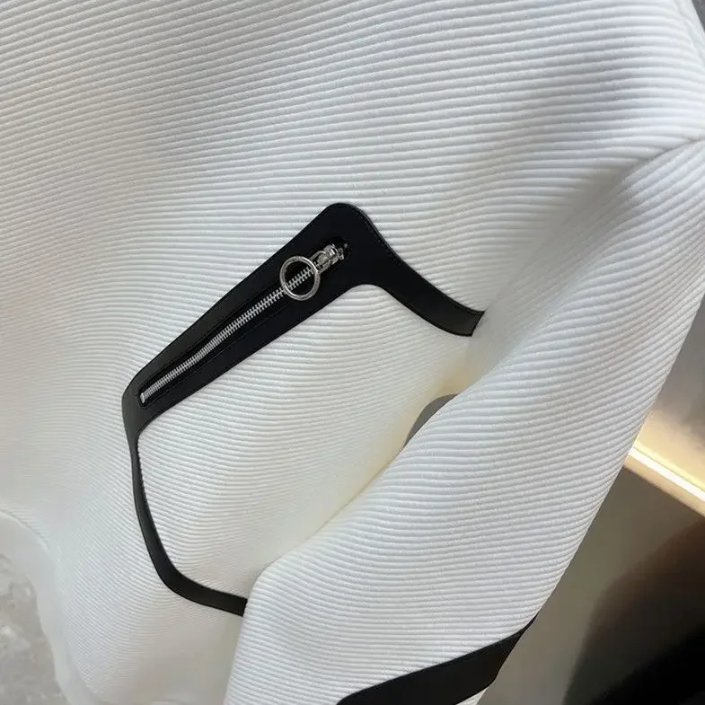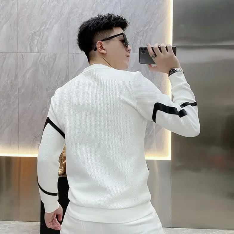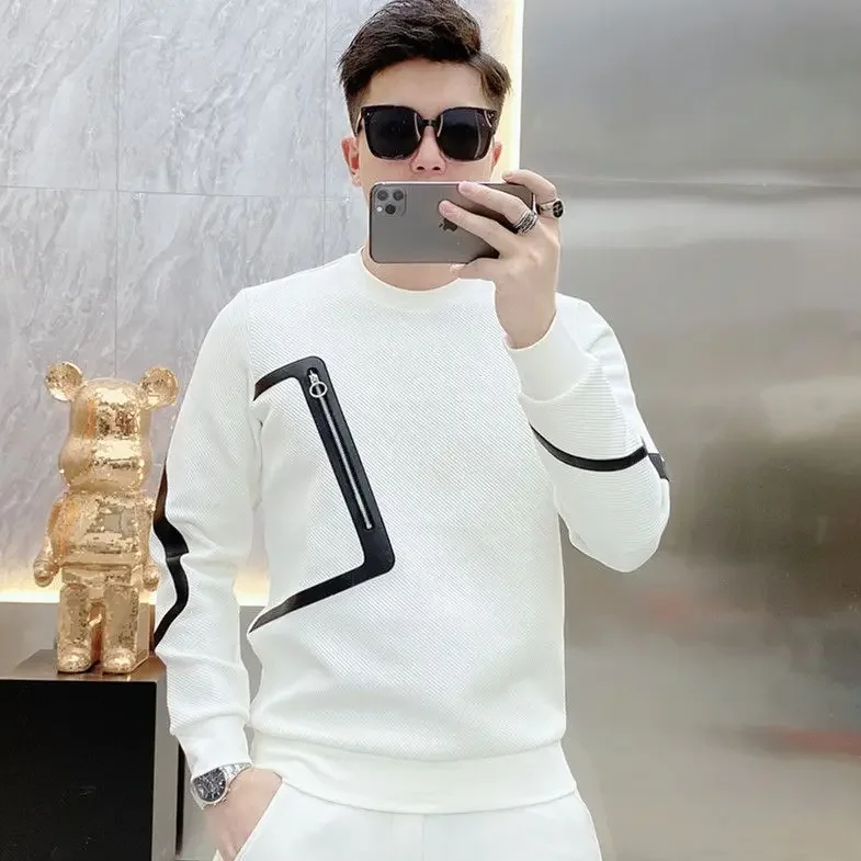 T-shirt a contrasto di colore Patchwork con cerniera di tendenza moda uomo primavera autunno pullover a maniche lunghe larghi casuali top vestiti maschili