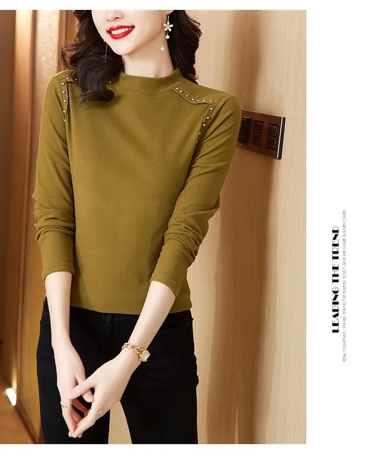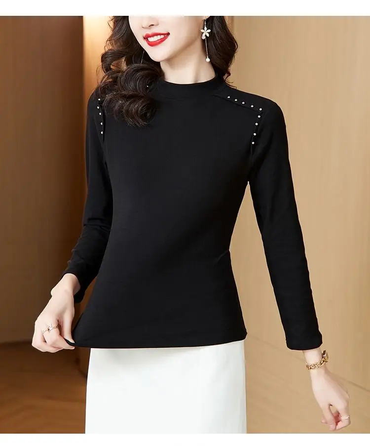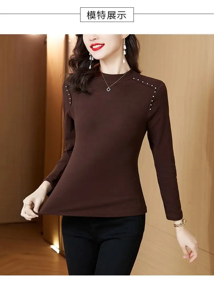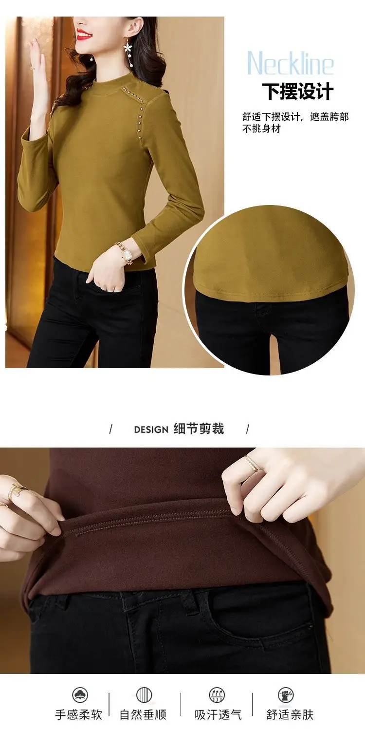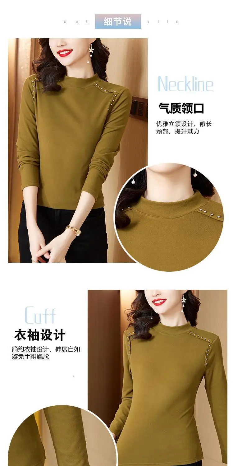 T-shirt a maniche lunghe con fondo nuovo stile da donna in velluto a doppia faccia con mezzo dolcevita autunno e inverno