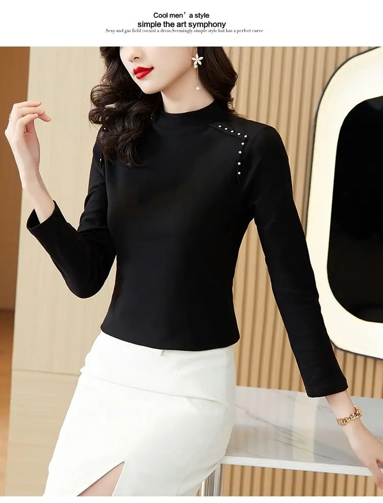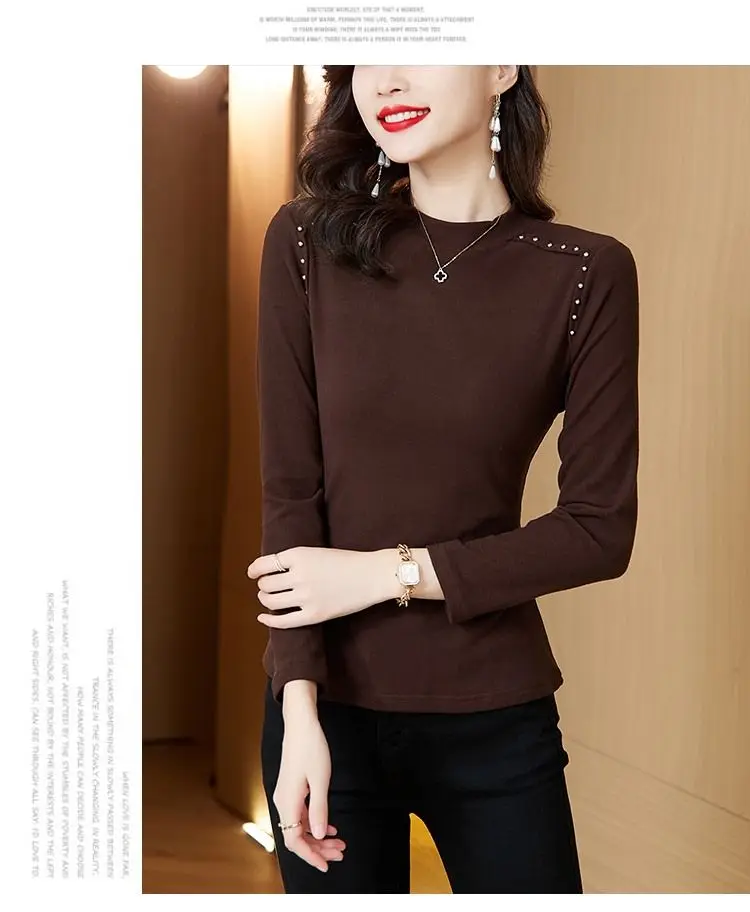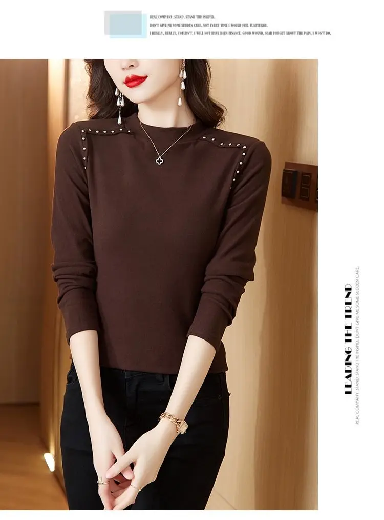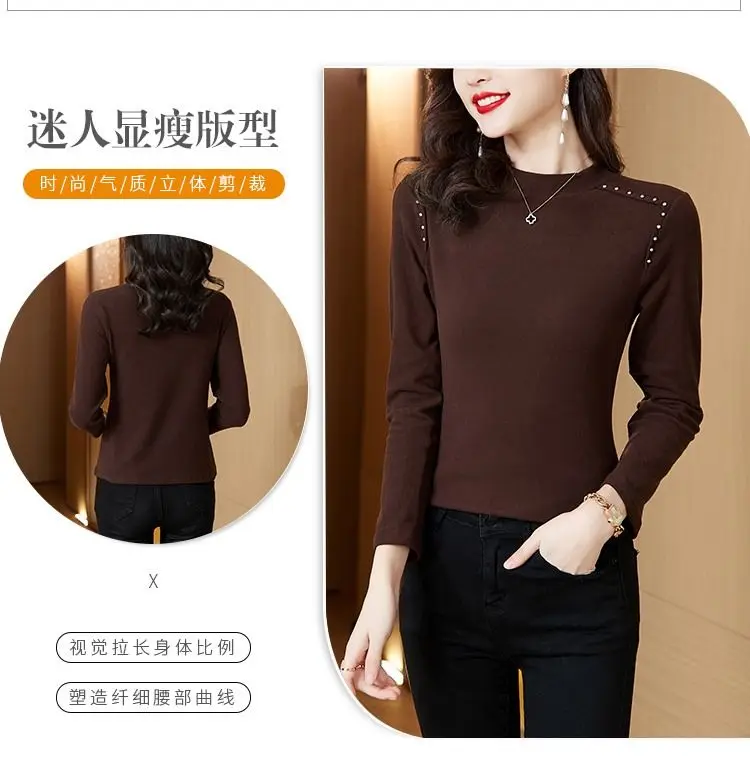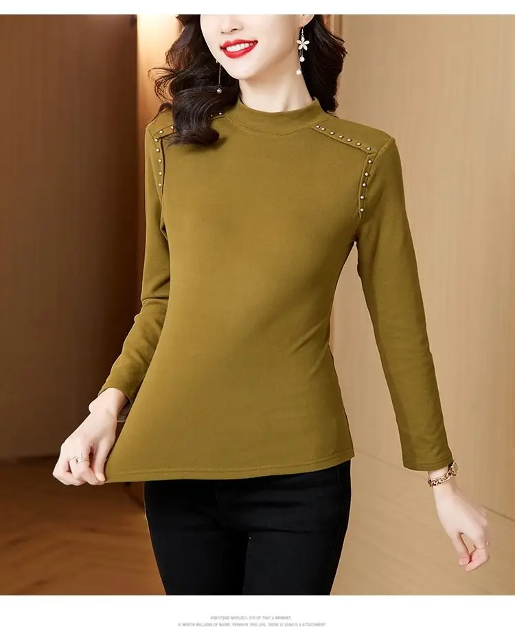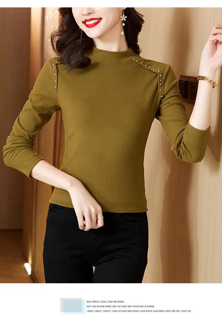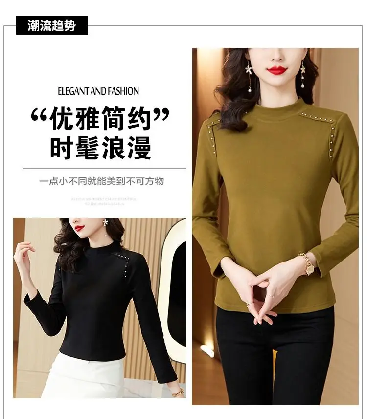 T-shirt a maniche lunghe con fondo nuovo stile da donna in velluto a doppia faccia con mezzo dolcevita autunno e inverno