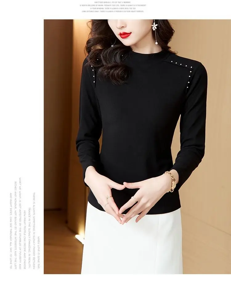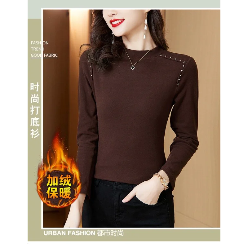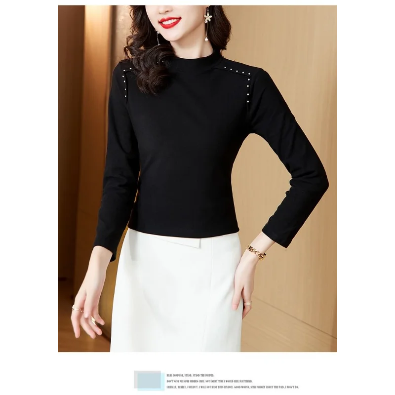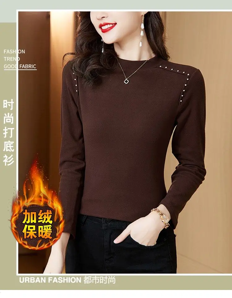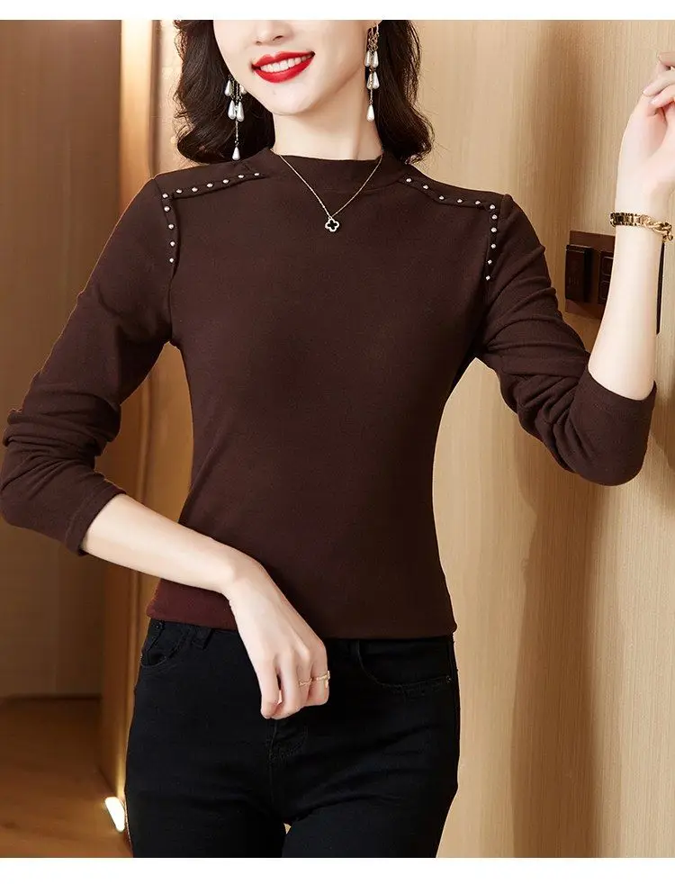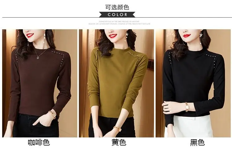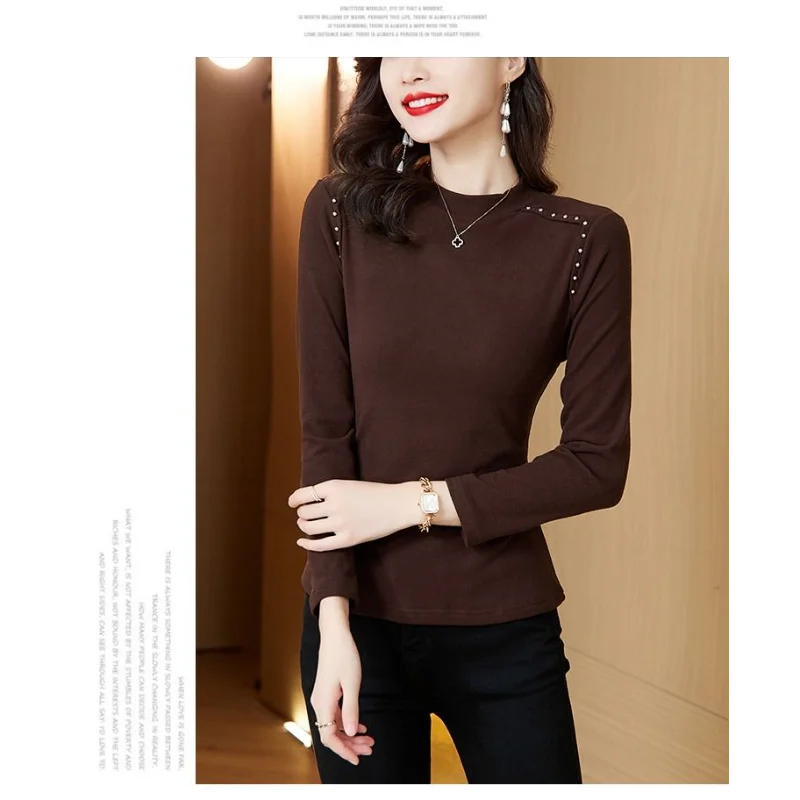 T-shirt a maniche lunghe con fondo nuovo stile da donna in velluto a doppia faccia con mezzo dolcevita autunno e inverno
