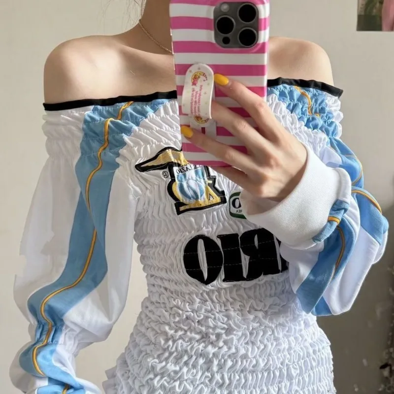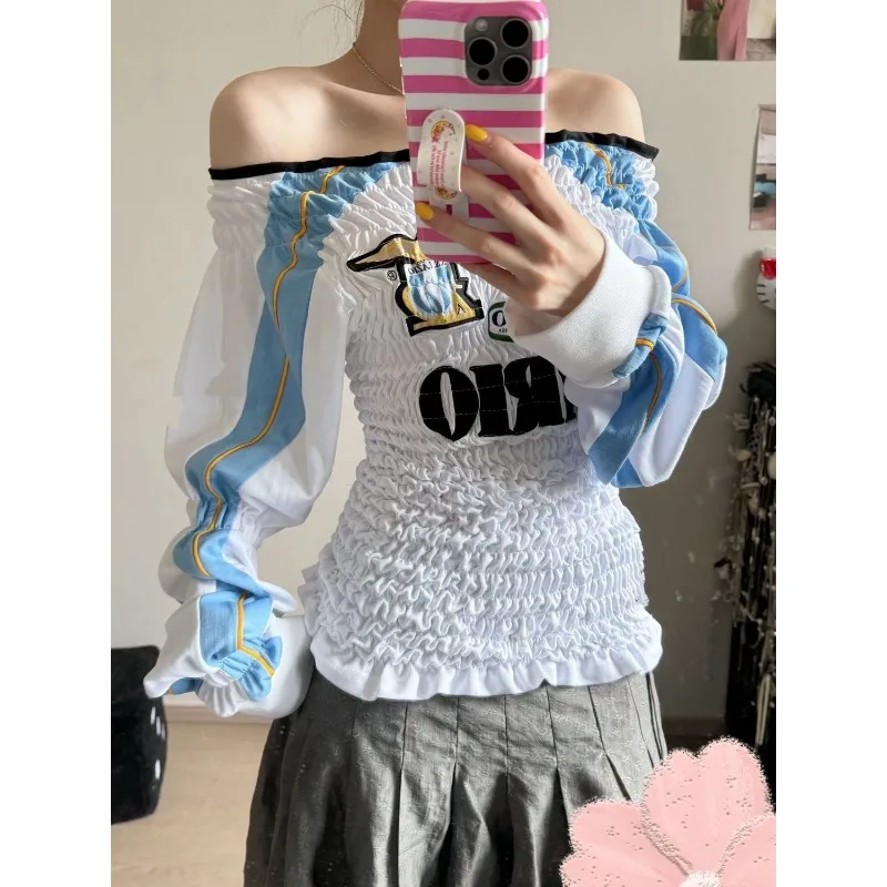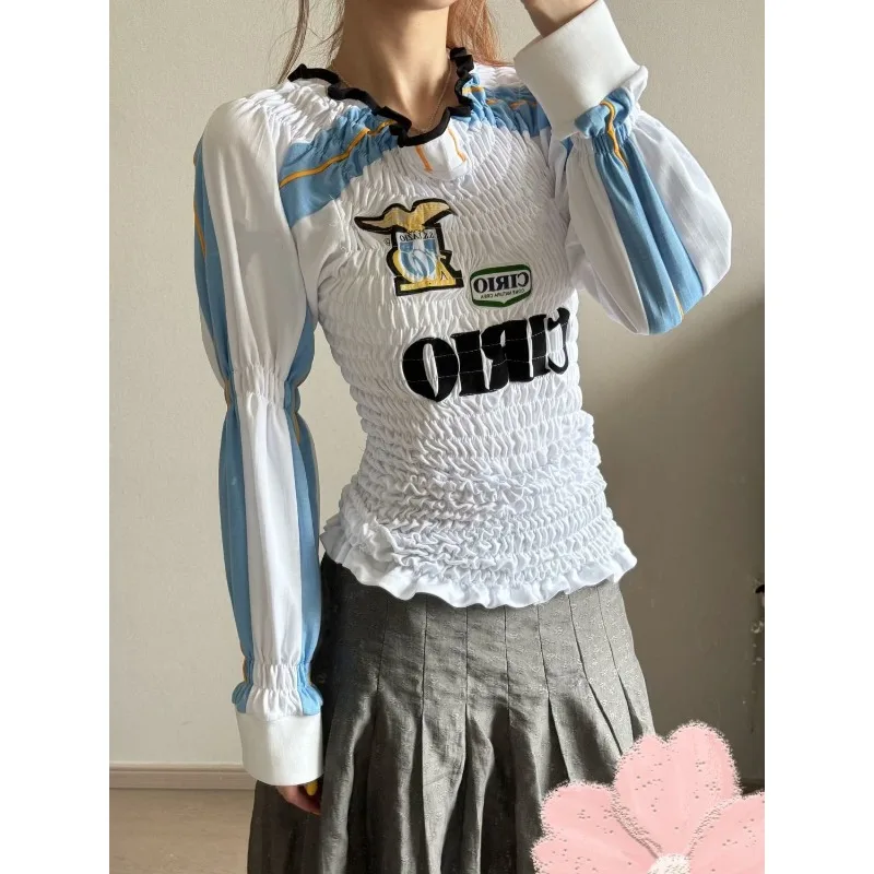T-shirt a maniche lunghe dal design americano vintage hot girl per le donne 2025 autunno e inverno nuova camicia basic versatile slim fit Tabella delle taglie