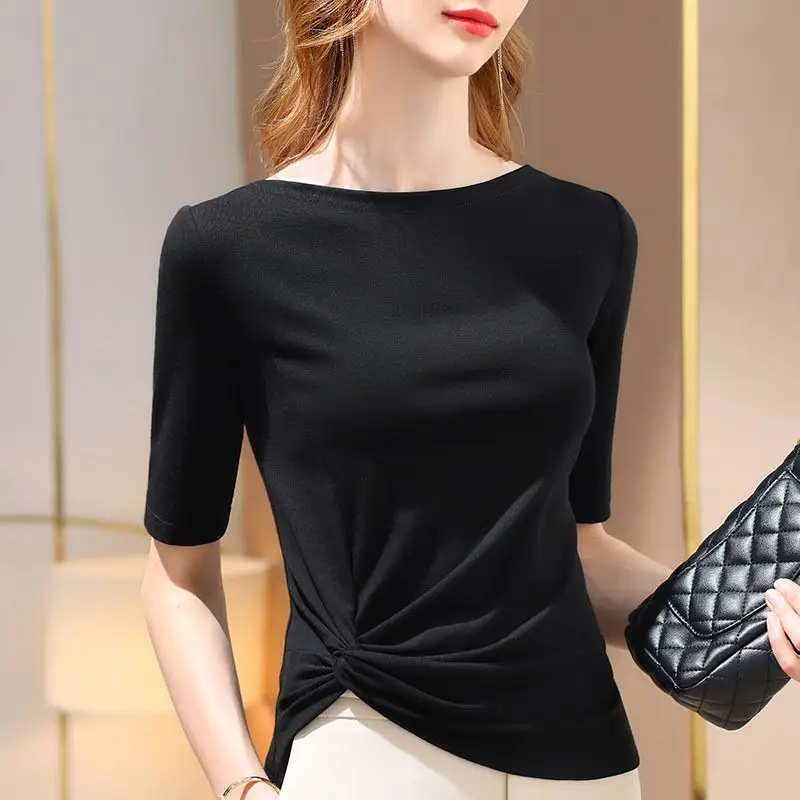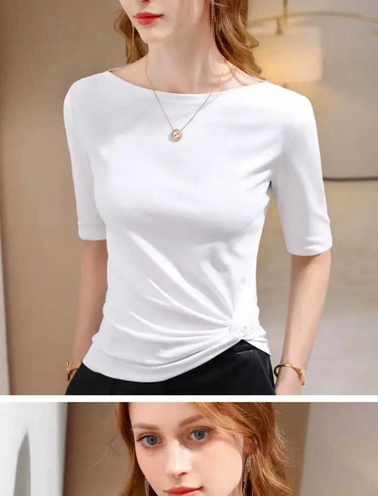 T-shirt a maniche lunghe da donna in puro cotone tinta unita slim e chic slim irregolare di un solo lunghezzaPensa ad un Regalo Unico e Utile per le Persone a te Vicine!! Regala un buono a partire da € 10,00 a € 300,00