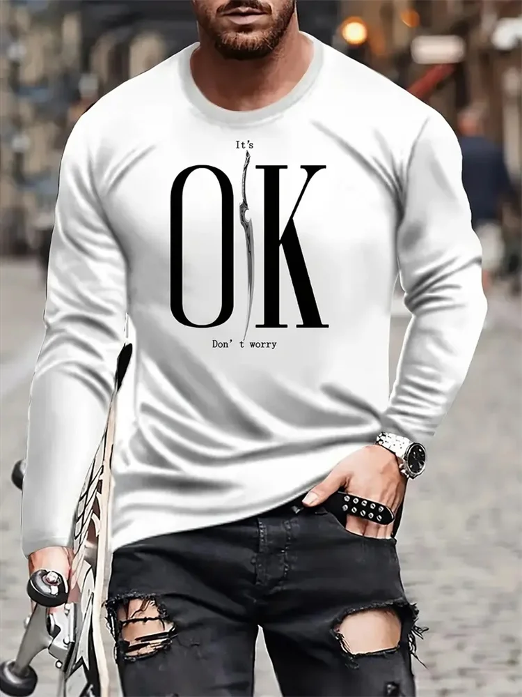 T-shirt a maniche lunghe girocollo da strada alla moda all'aperto T-shirt semplice con stampa di lettere autunno comoda manica lunga casual quotidiana Y2K Top 1T-shirt a maniche lunghe girocollo da strada alla moda all’aperto T-shirt semplice con stampa di lettere autunno comoda manica lunga casual quotidiana Y2K Top
