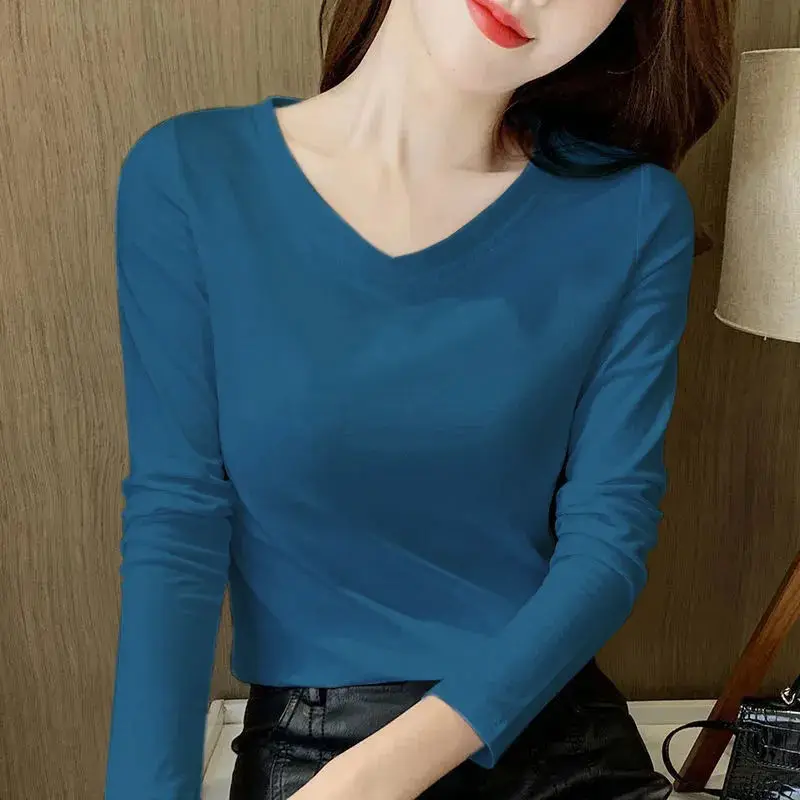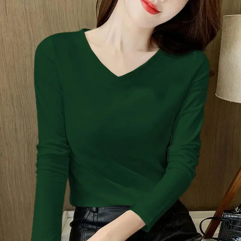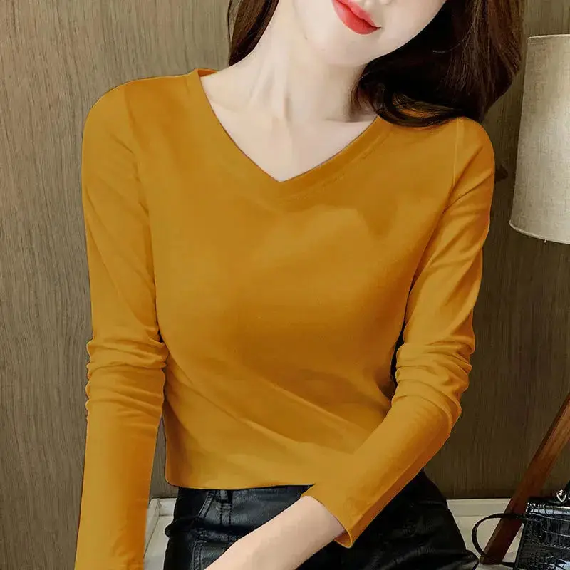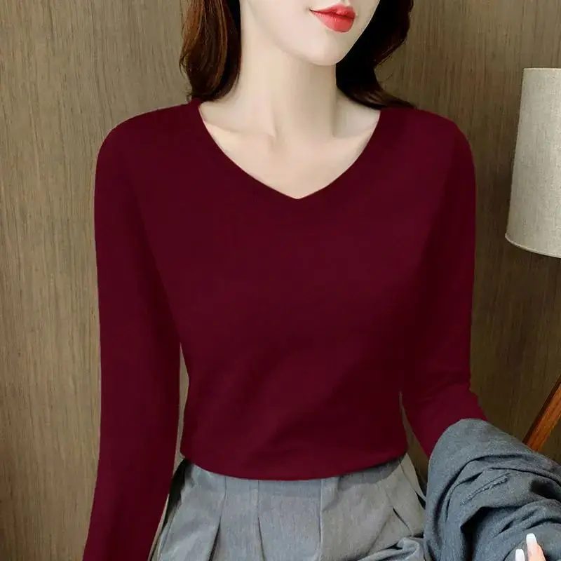 T-shirt da donna a maniche lunghe allentata e alla moda per l’inizio dell’autunno del 2025 Top base sottile interno