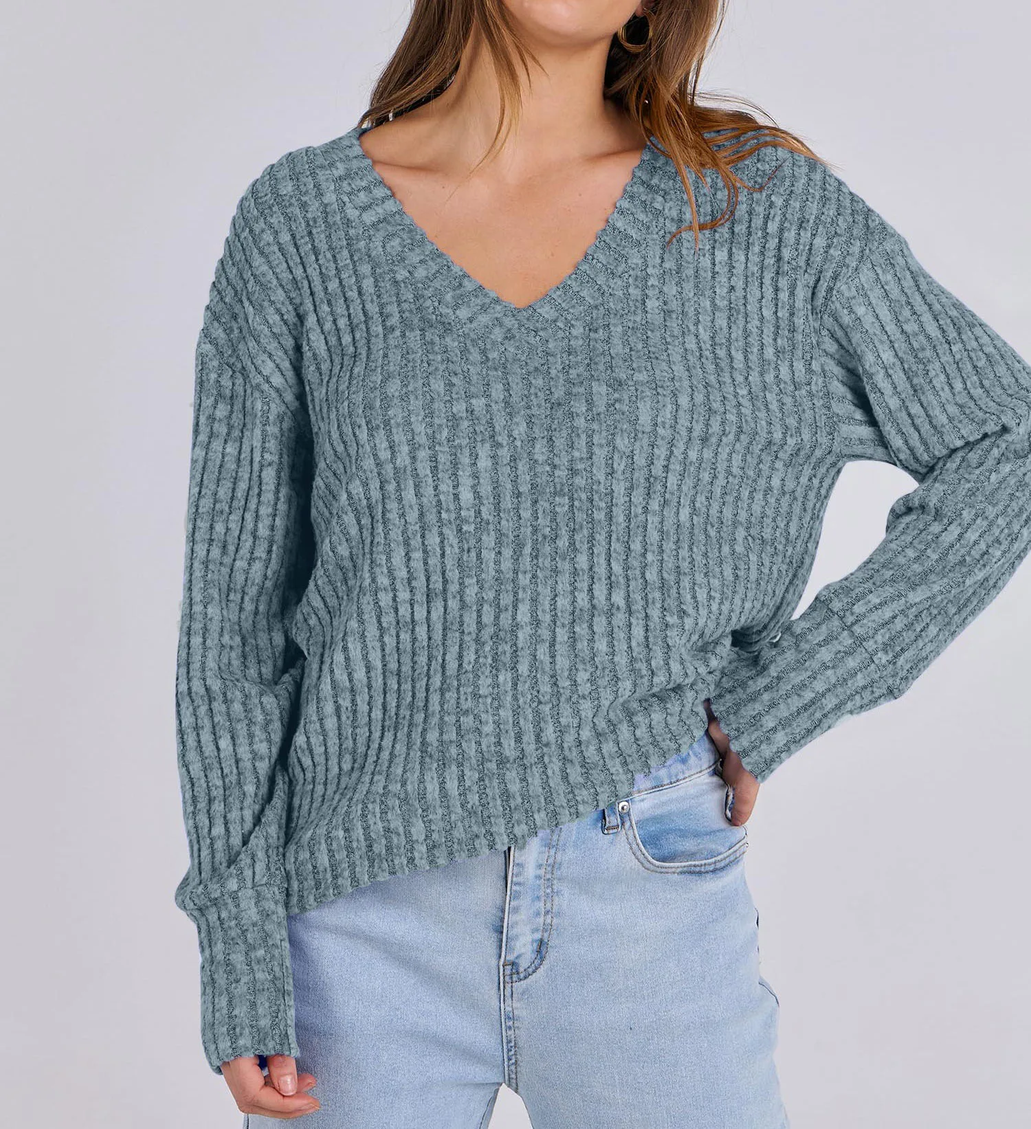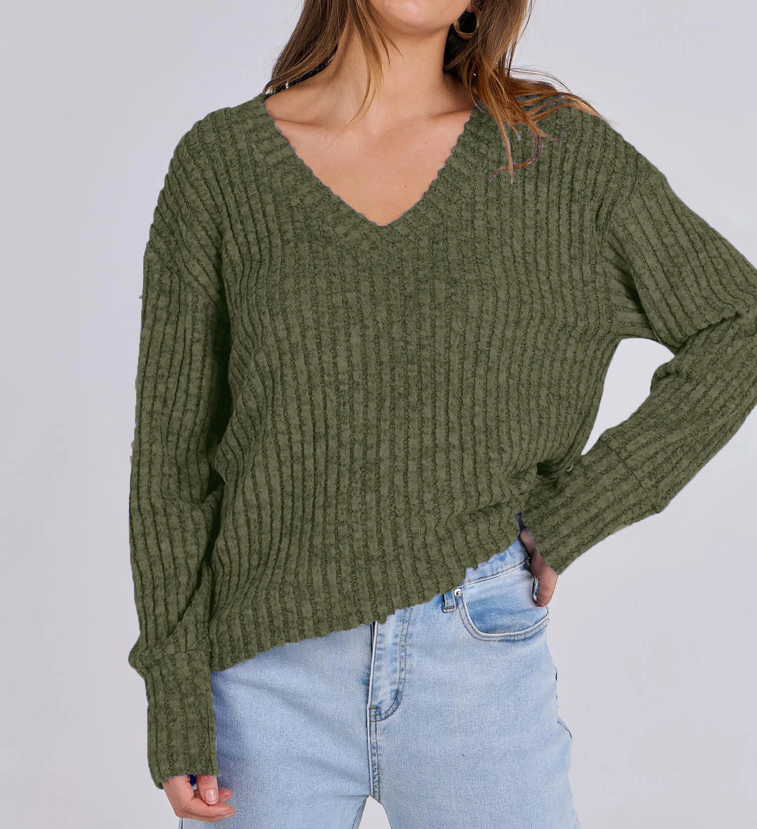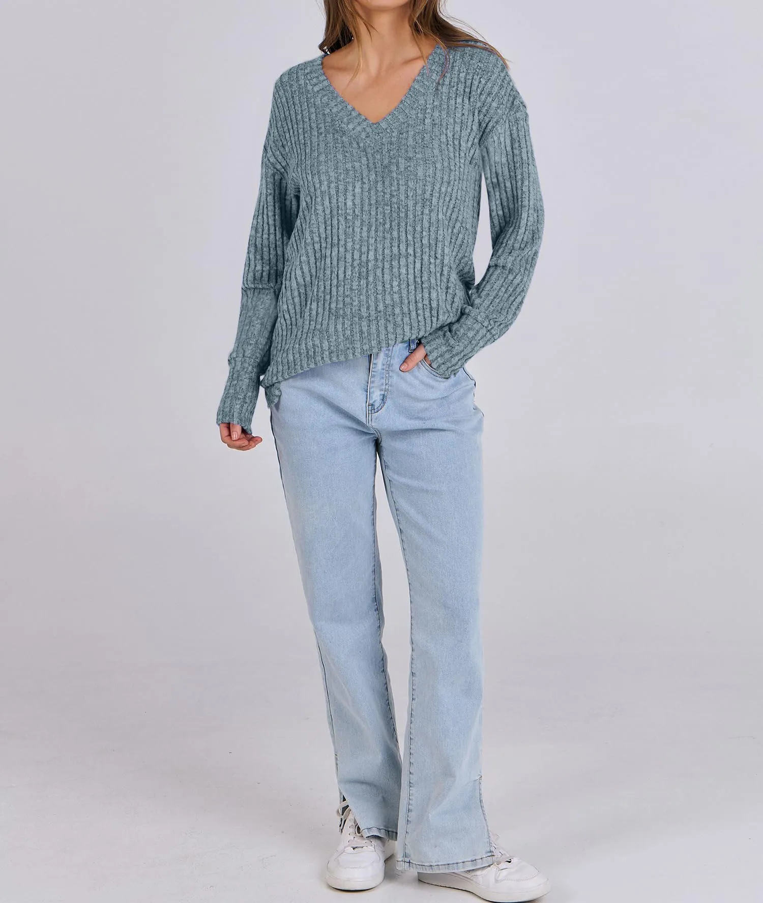 T-shirt da donna a maniche lunghe con scollo a V Top con temperamento alla moda fresato a righe