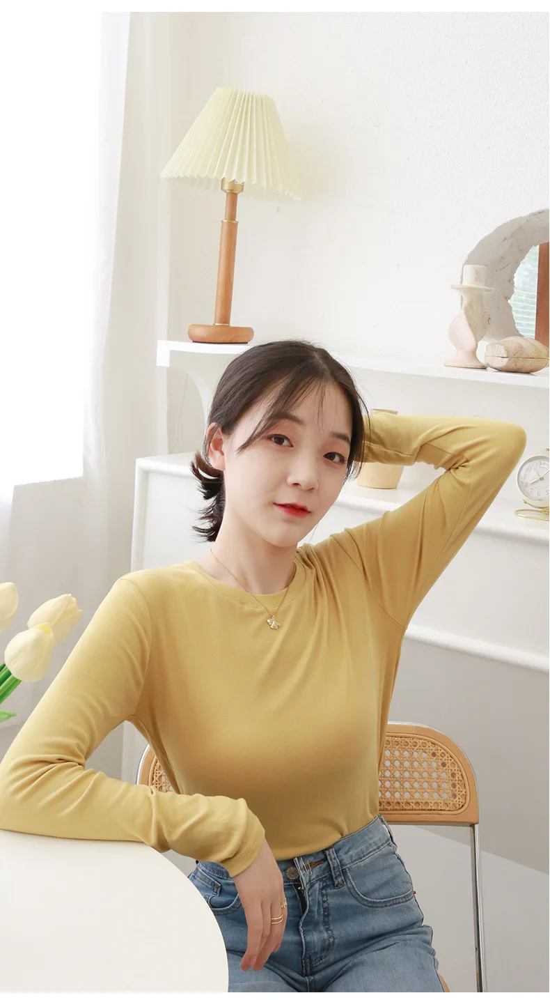 T-shirt da donna Camicia che tocca il fondo 2025 Autunno Inverno Dolcevita T-shirt modale slim fit interna in tessuto solido coreano moda calda