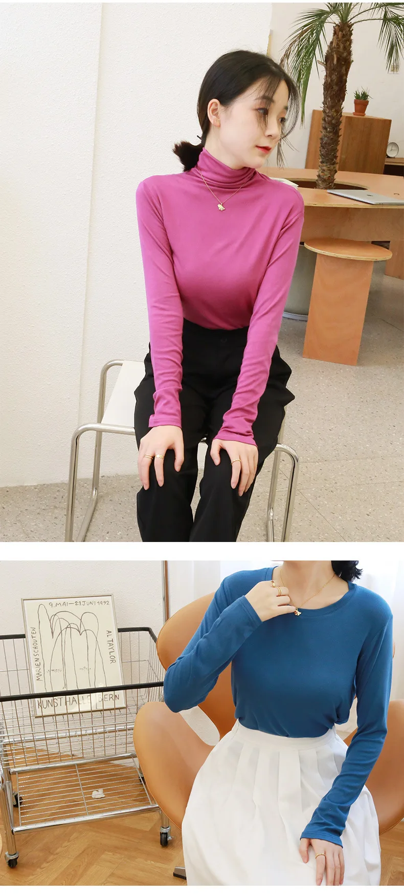 T-shirt da donna Camicia che tocca il fondo 2025 Autunno Inverno Dolcevita T-shirt modale slim fit interna in tessuto solido coreano moda calda 1T-shirt da donna Camicia che tocca il fondo 2025 Autunno Inverno Dolcevita T-shirt modale slim fit interna in tessuto solido coreano moda calda