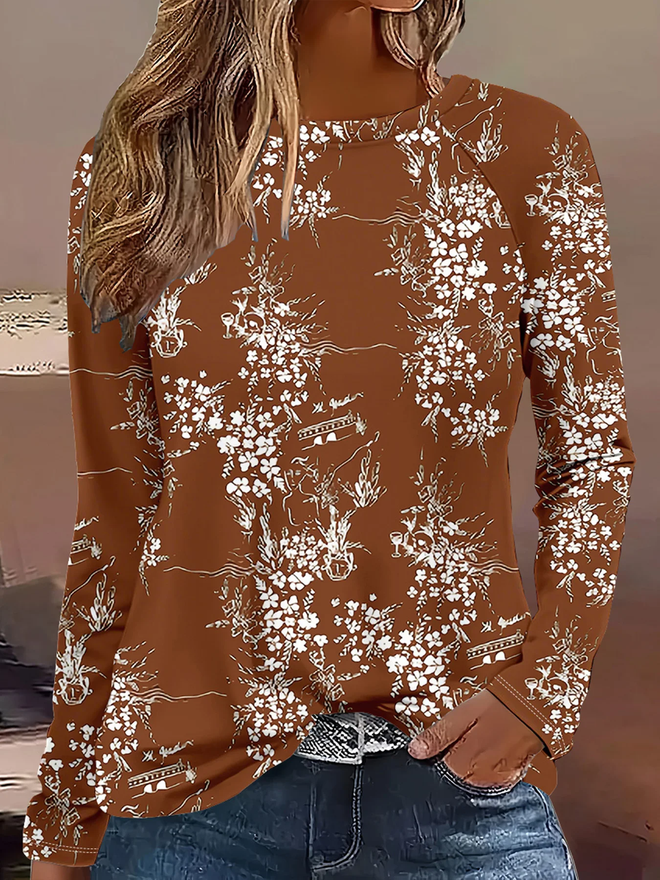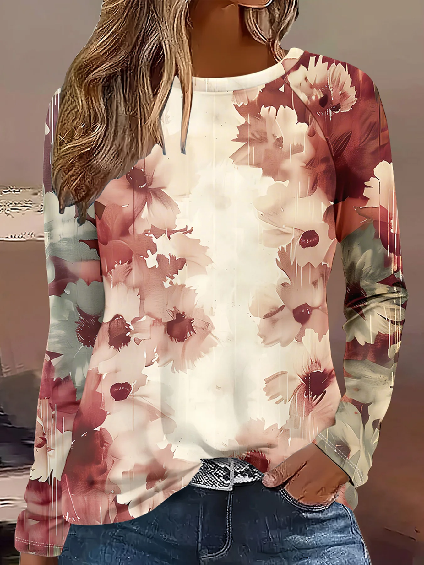 T-shirt da donna con stampa floreale stampata in 3D Moda manica lunga girocollo Top regolari Vacanza fine settimana Primavera Autunno