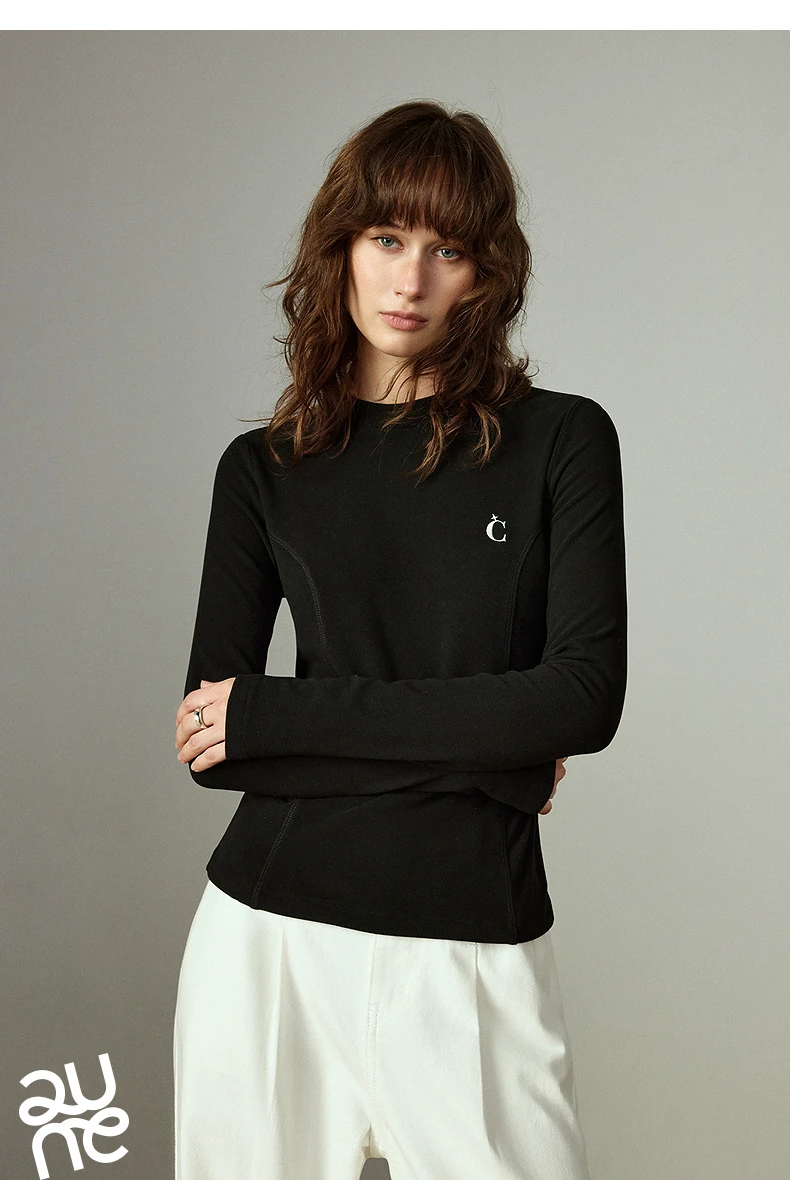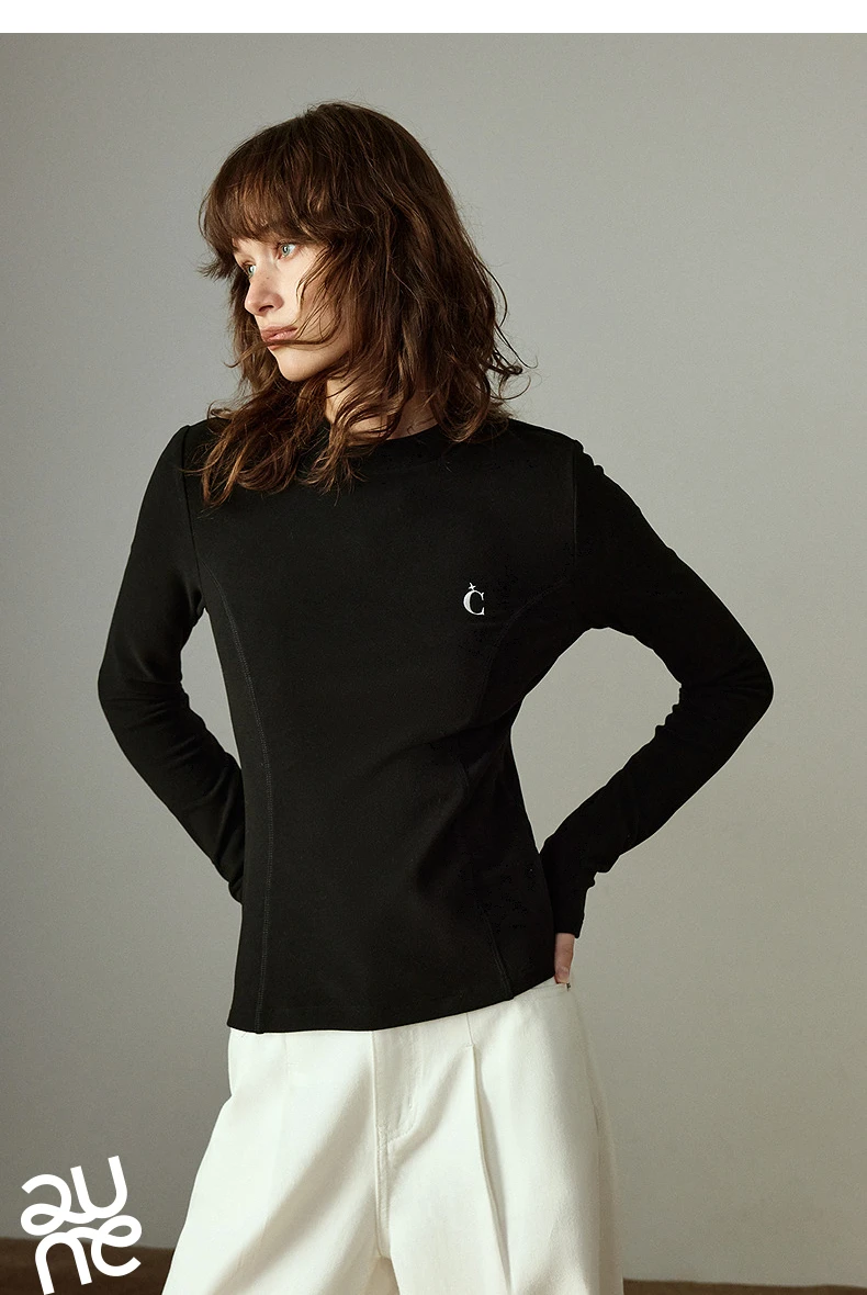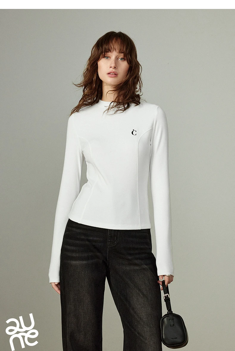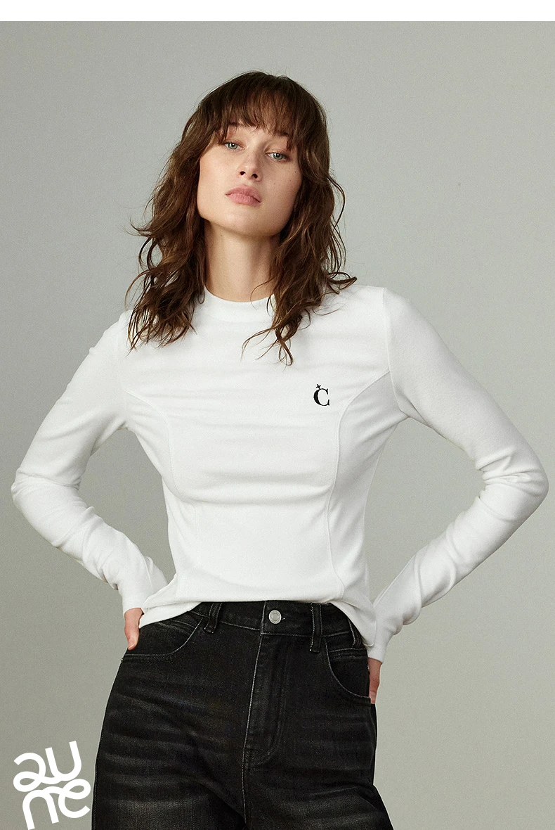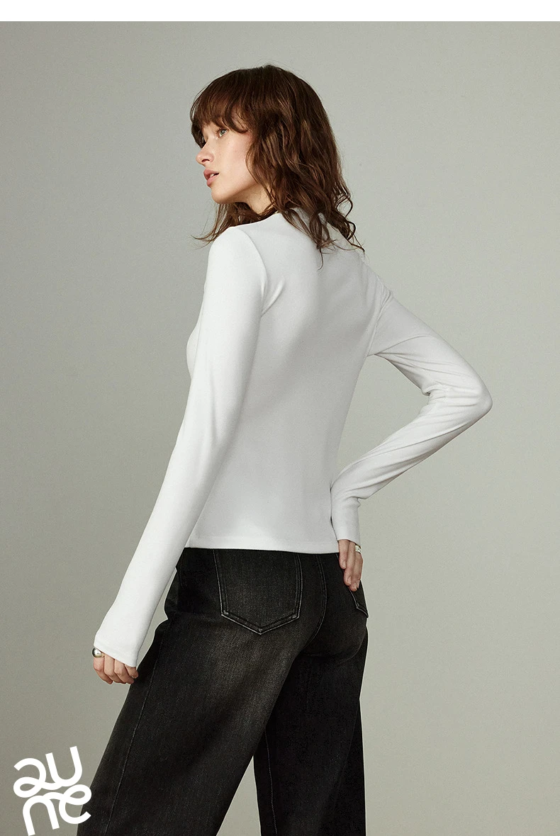 T-shirt da donna TOYOUTH 2025 Inverno Nuovo design diviso caldo Top con strato base snellente raccolto in vita