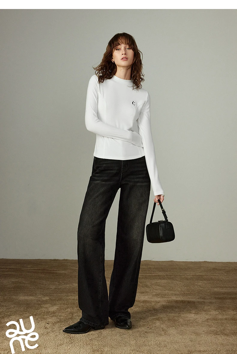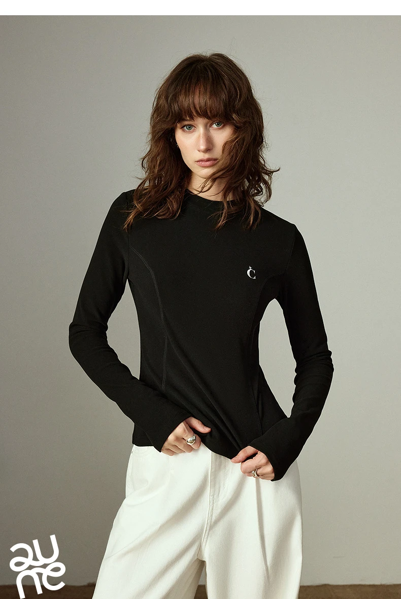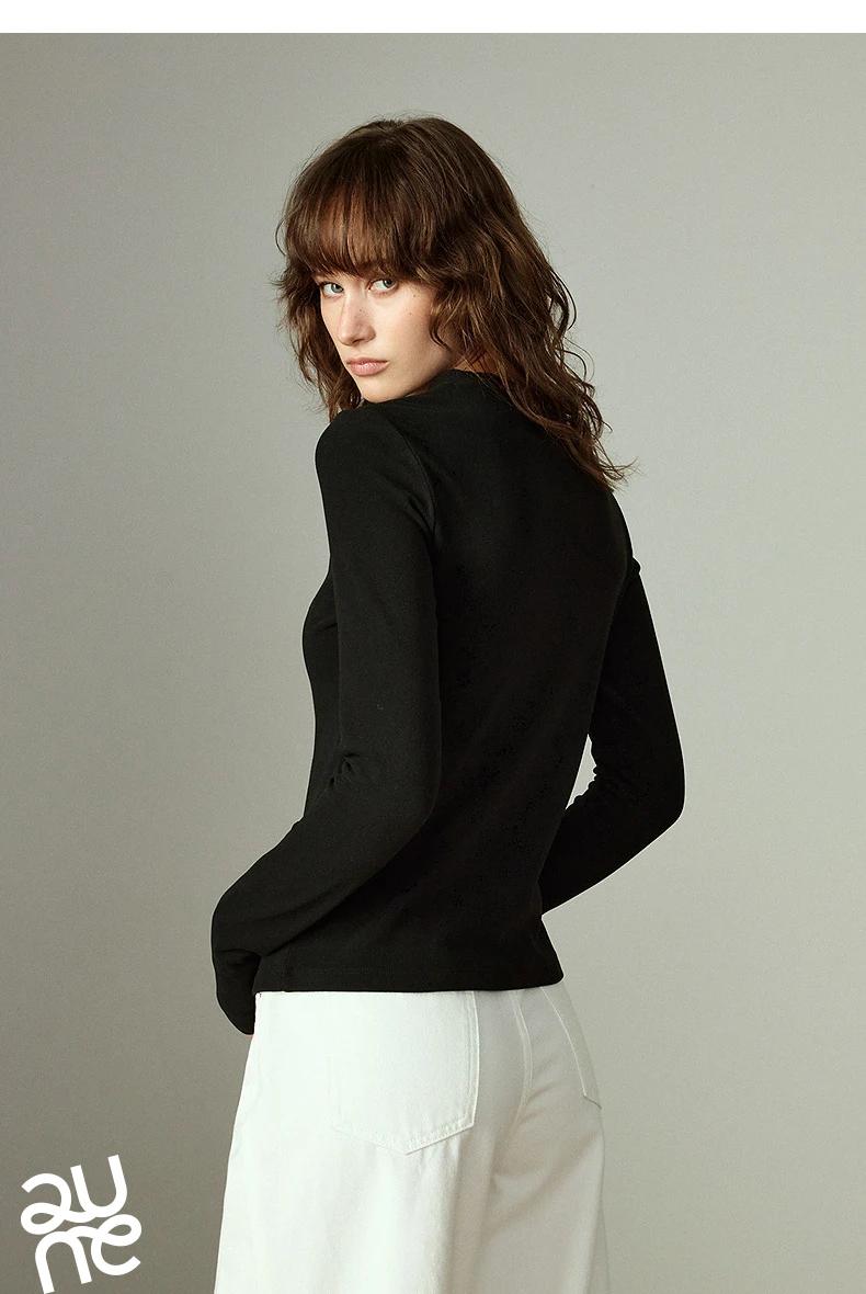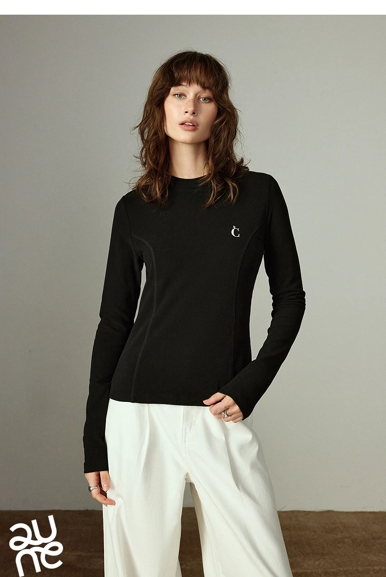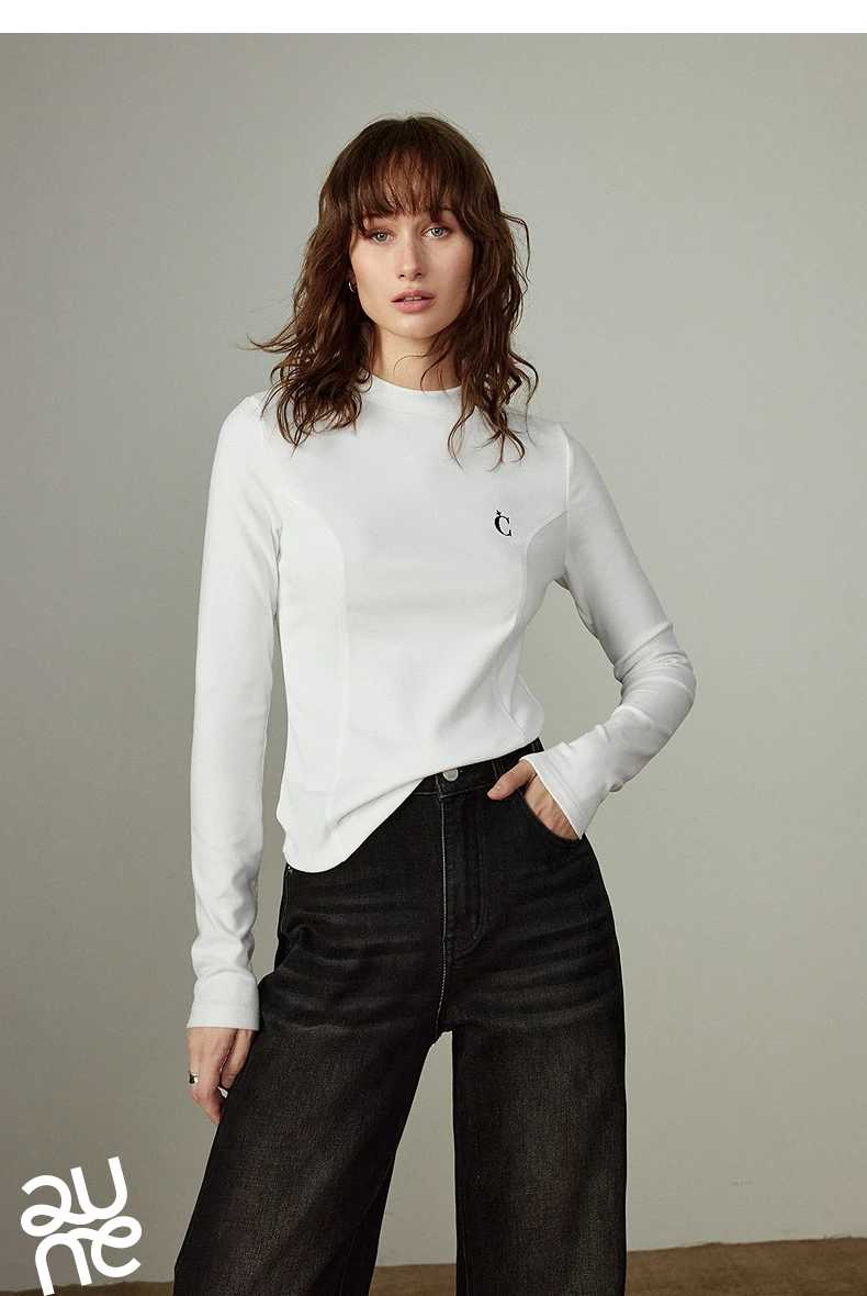 T-shirt da donna TOYOUTH 2025 Inverno Nuovo design diviso caldo Top con strato base snellente raccolto in vita