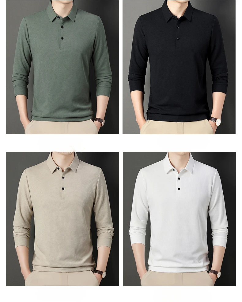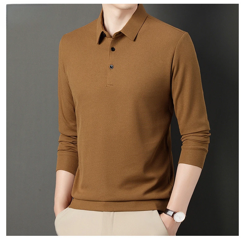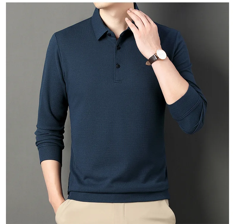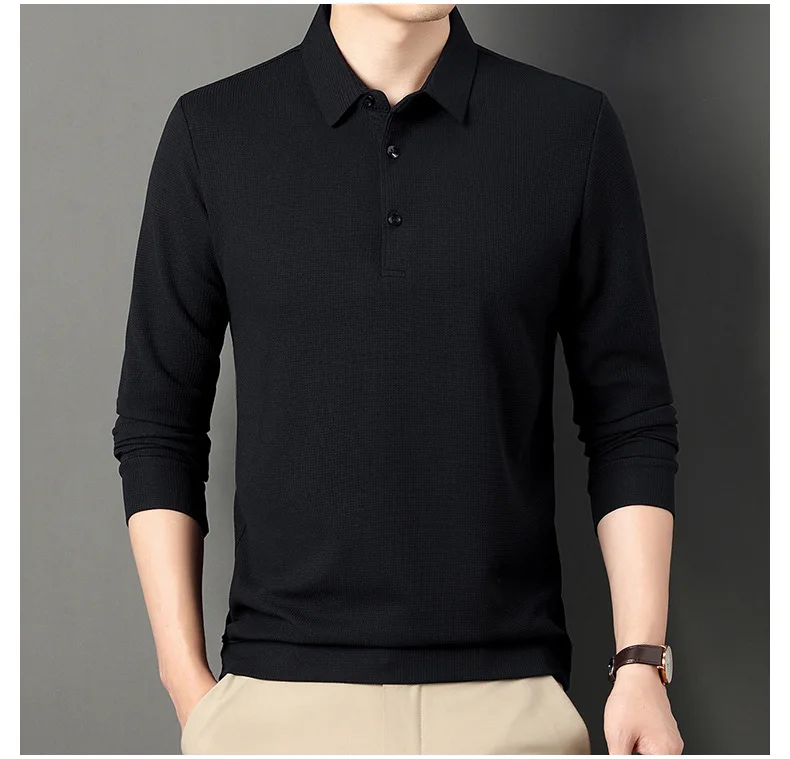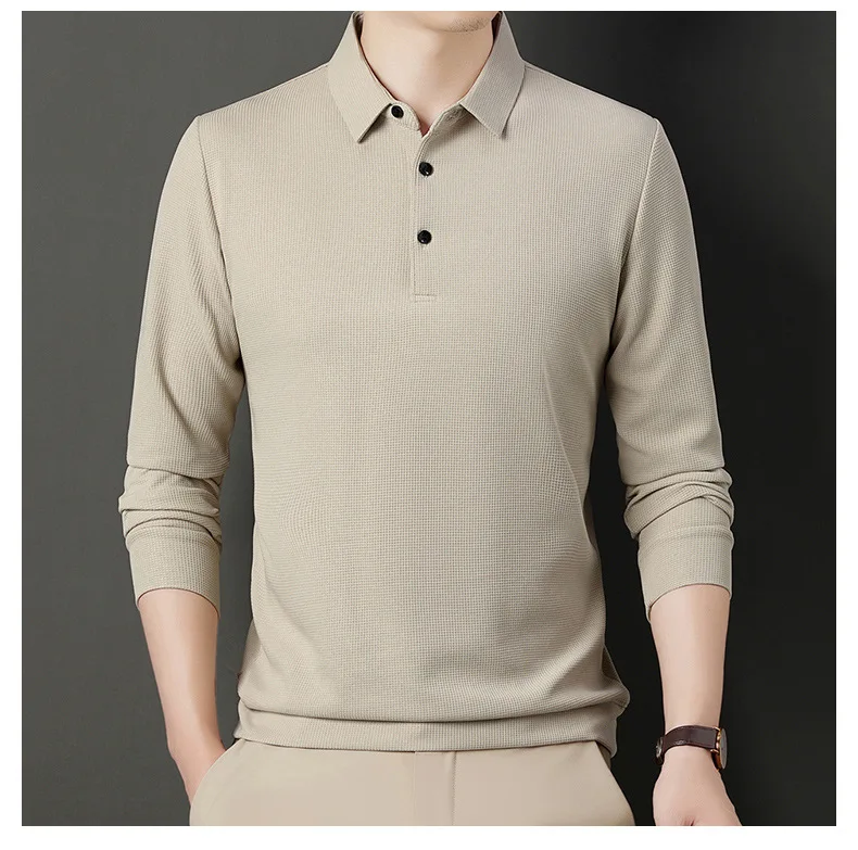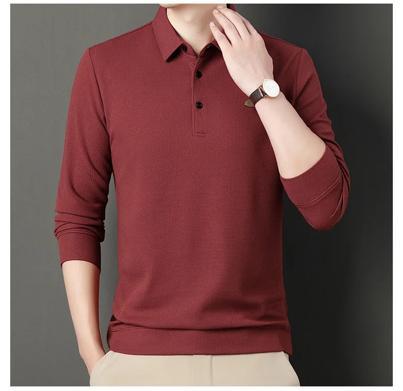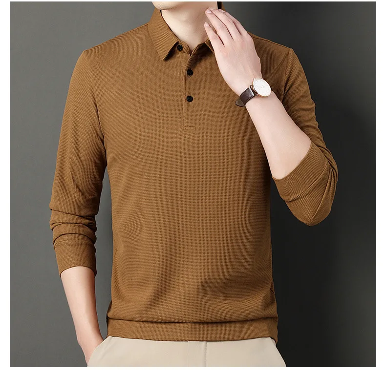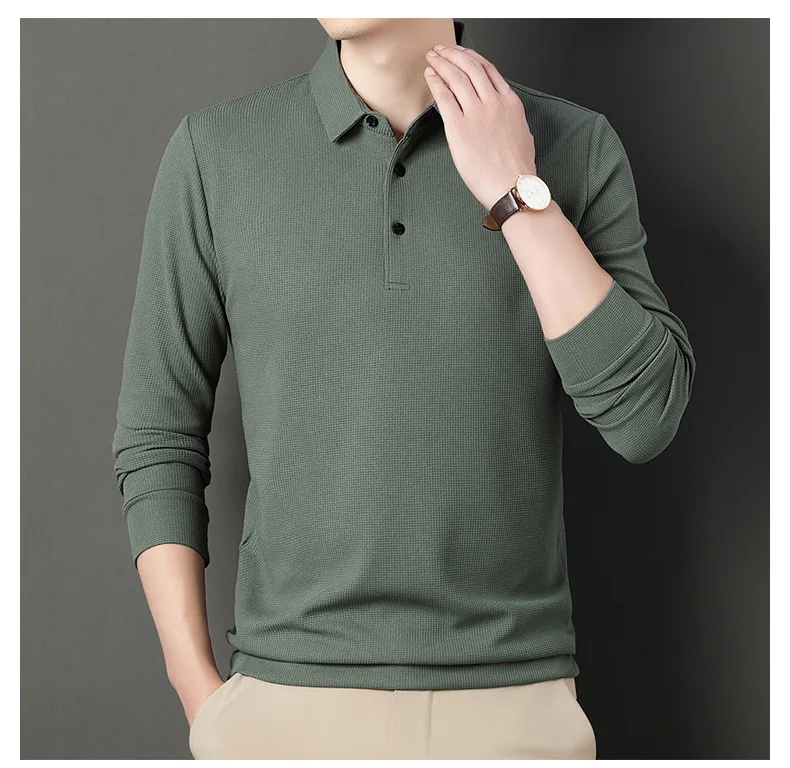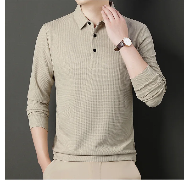 T-Shirt da uomo a maniche lunghe Waffle primavera e autunno da uomo POLO da uomo tinta unita Polo da uomo Casual di marca 1T-Shirt da uomo a maniche lunghe Waffle primavera e autunno da uomo POLO da uomo tinta unita Polo da uomo Casual di marca