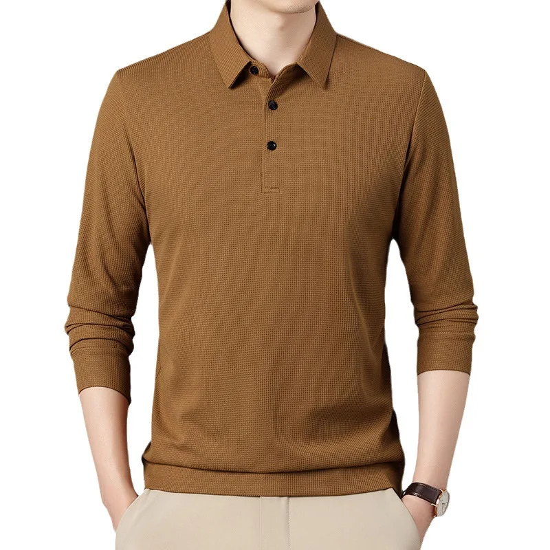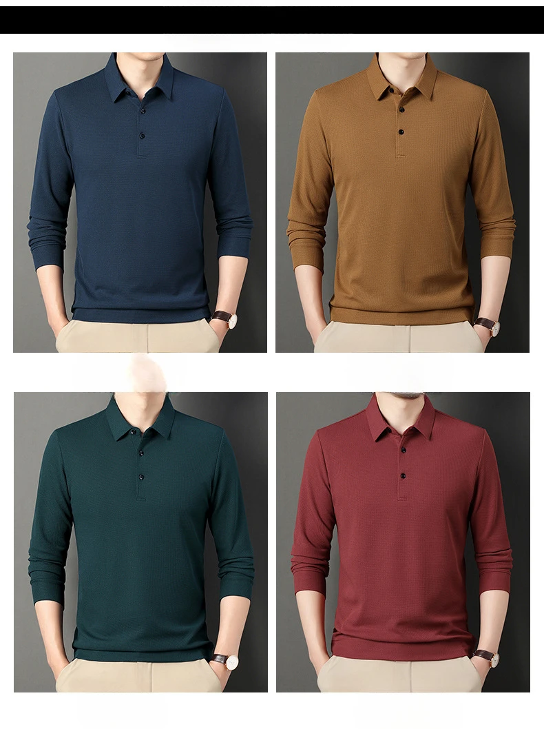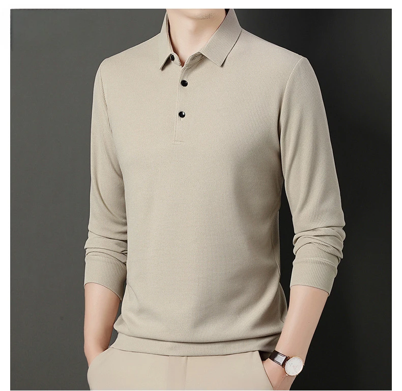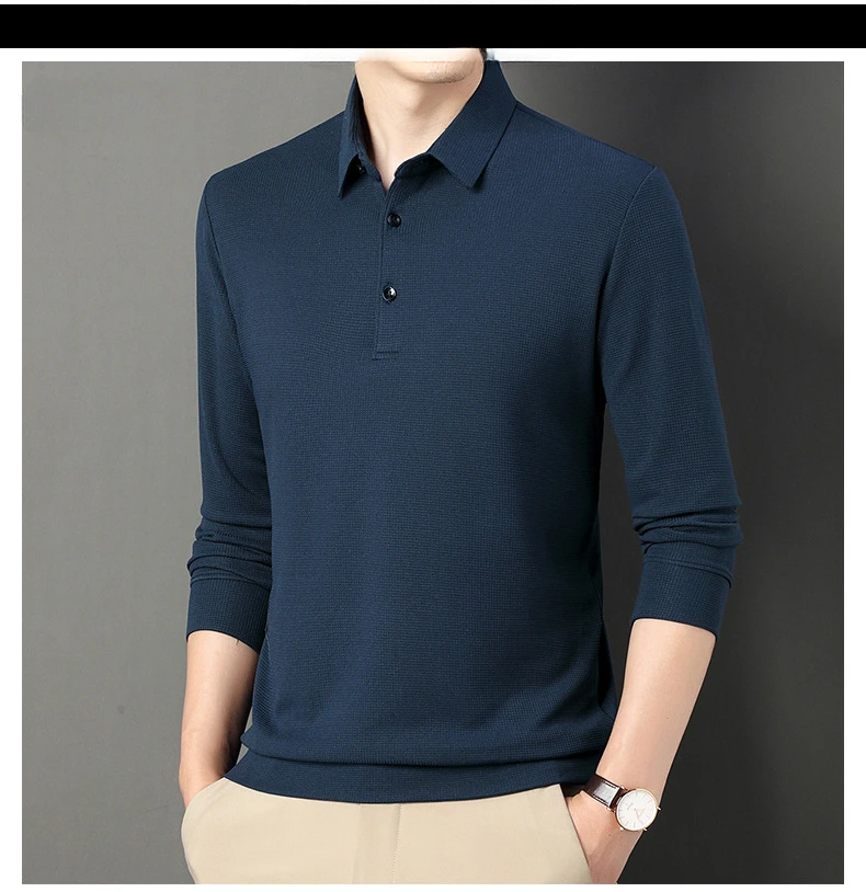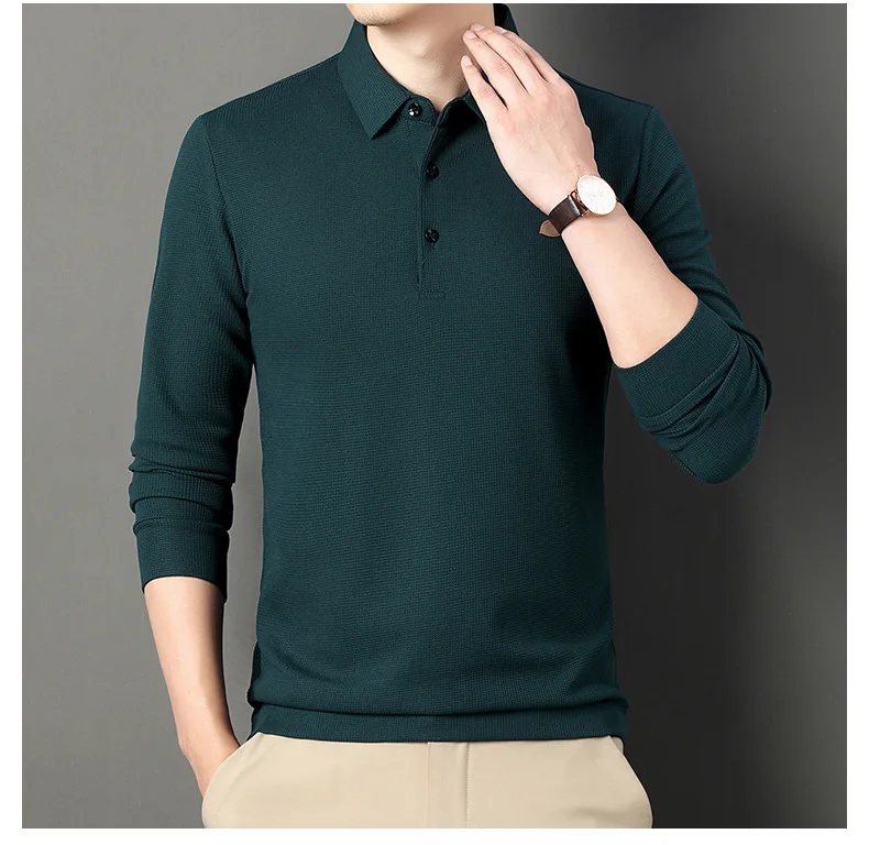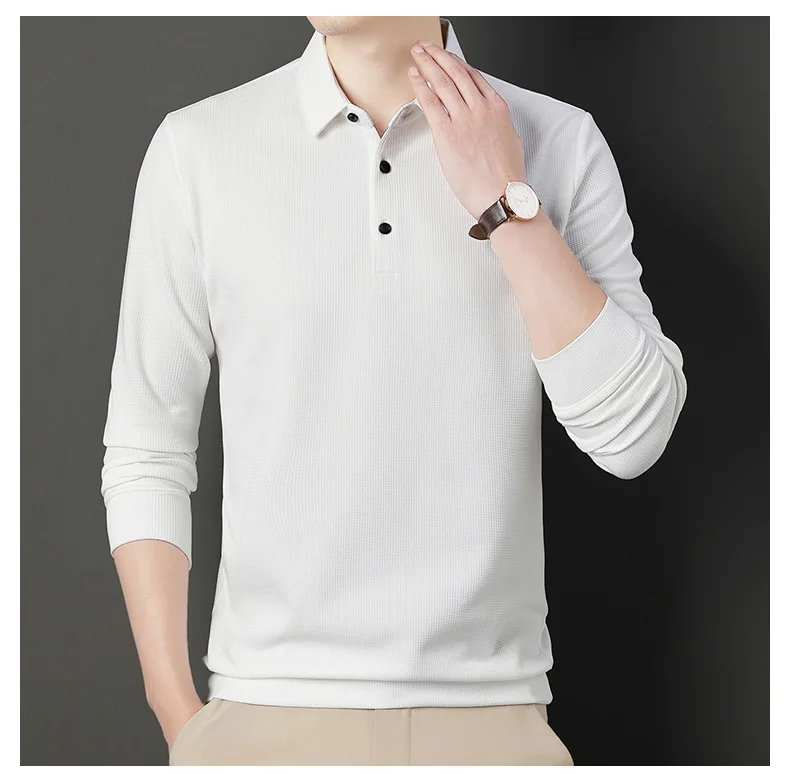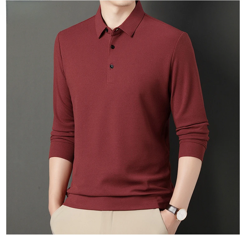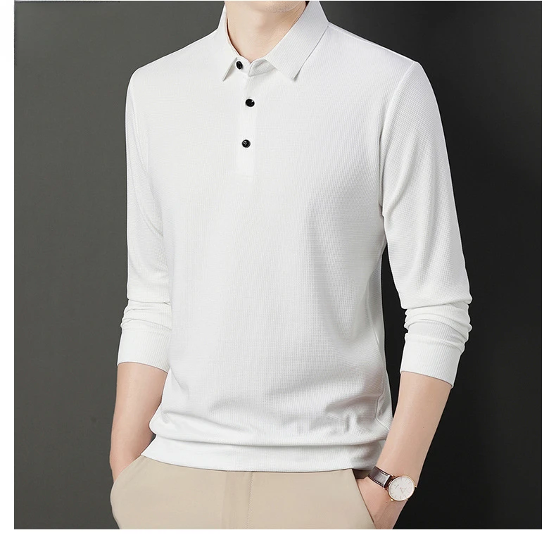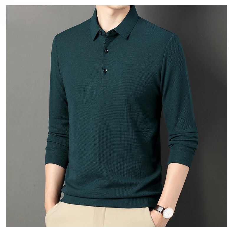 T-Shirt da uomo a maniche lunghe Waffle primavera e autunno da uomo POLO da uomo tinta unita Polo da uomo Casual di marca 1T-Shirt da uomo a maniche lunghe Waffle primavera e autunno da uomo POLO da uomo tinta unita Polo da uomo Casual di marca