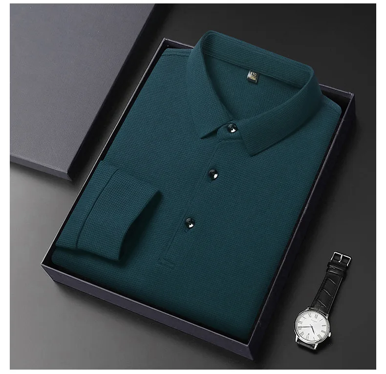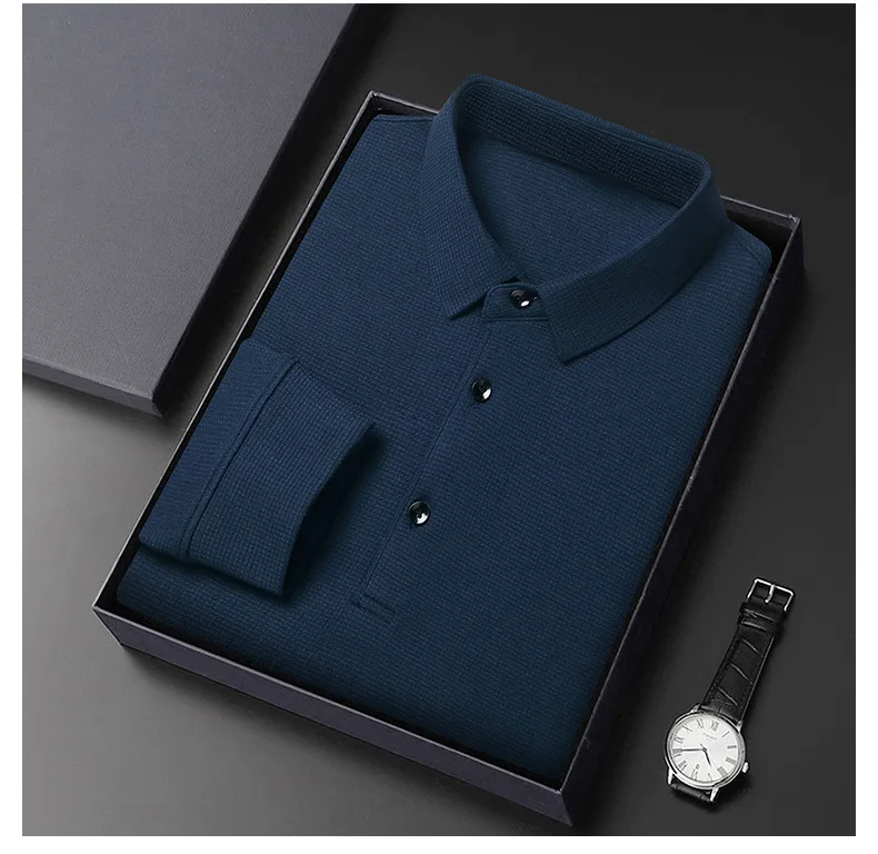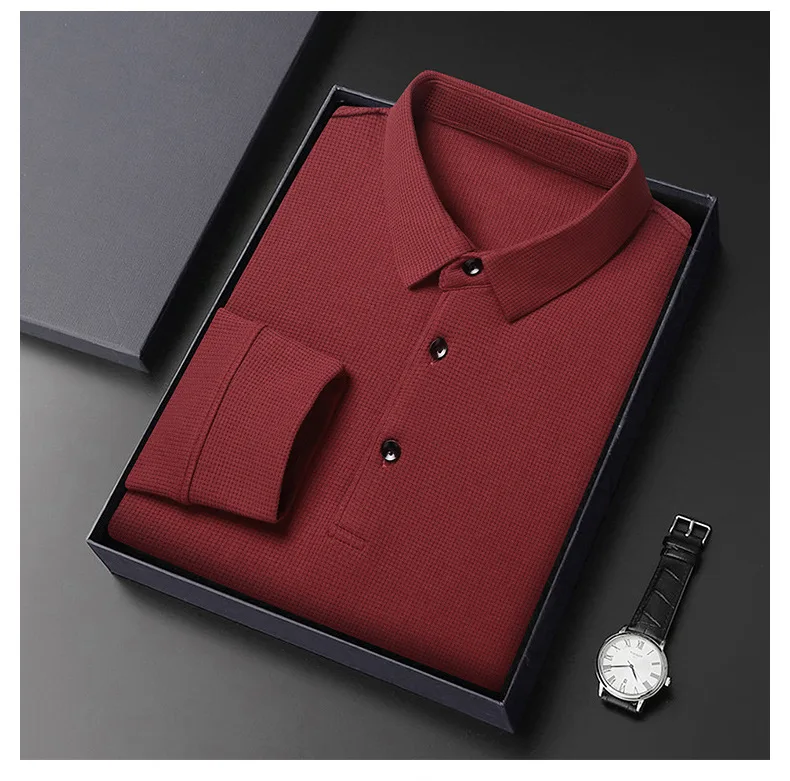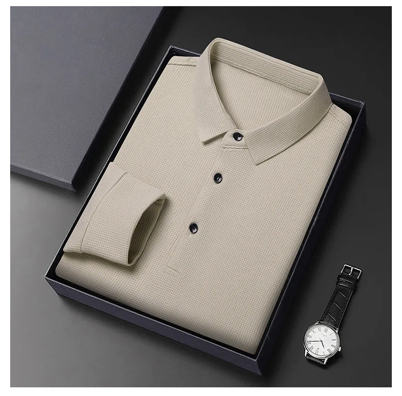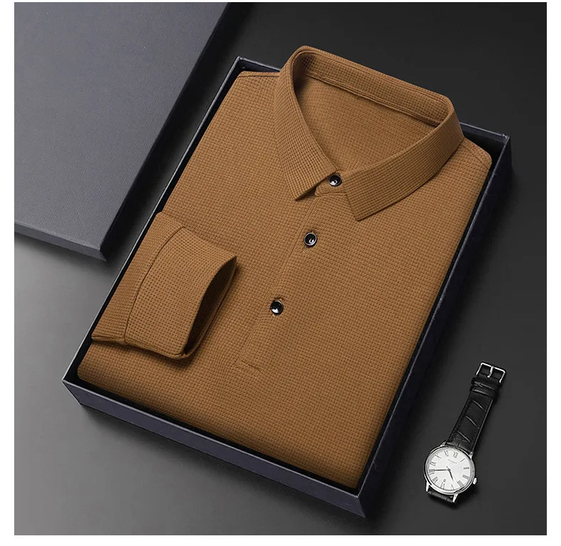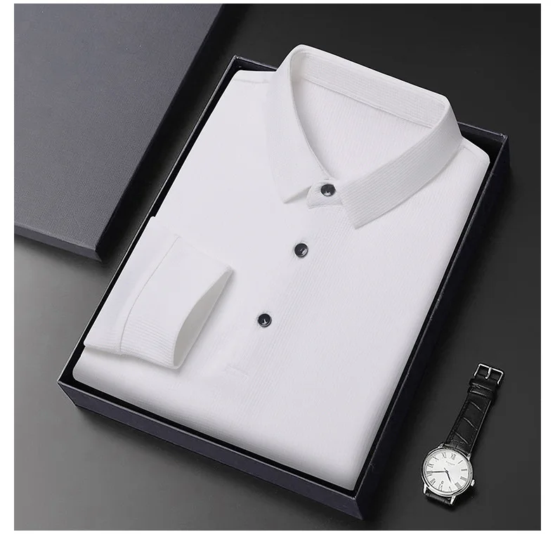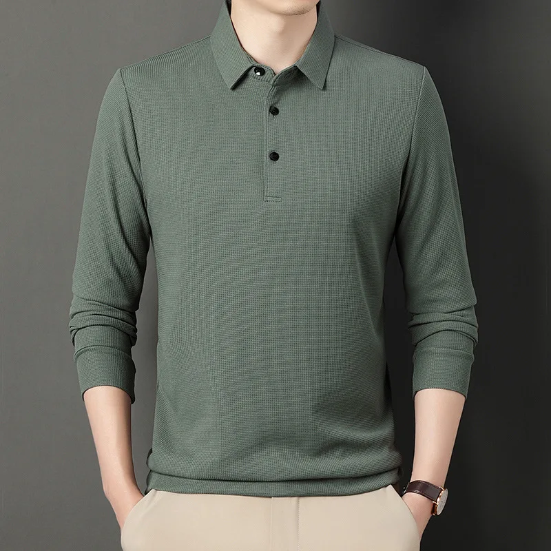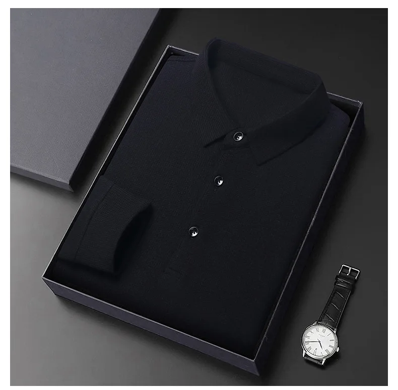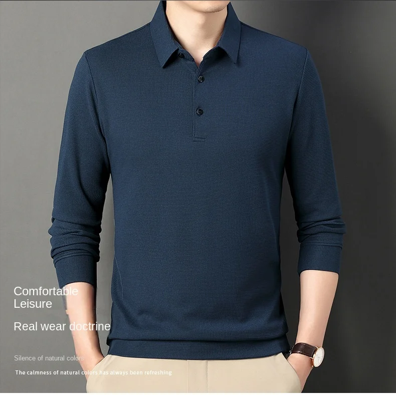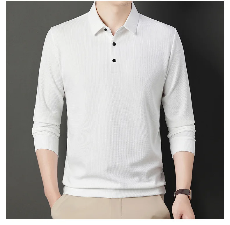 T-Shirt da uomo a maniche lunghe Waffle primavera e autunno da uomo POLO da uomo tinta unita Polo da uomo Casual di marca 1T-Shirt da uomo a maniche lunghe Waffle primavera e autunno da uomo POLO da uomo tinta unita Polo da uomo Casual di marca