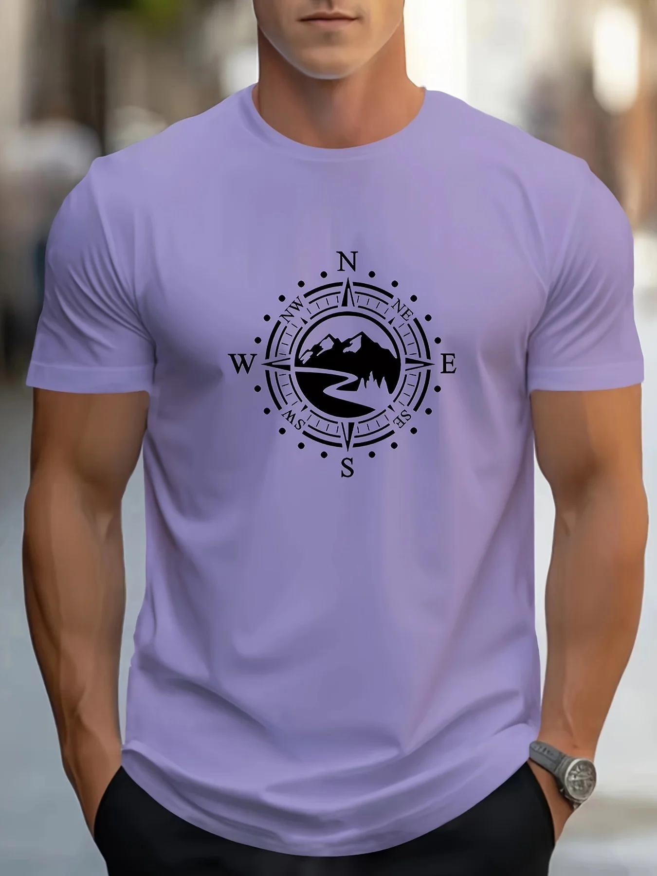 T-shirt da uomo estiva casual allentata con motivo a bussola grande stampato sportivo comoda girocollo a maniche corte