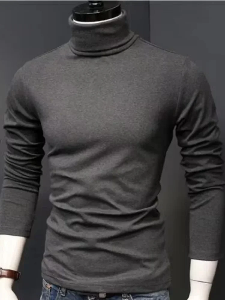 T-shirt dolcevita da uomo moda casual autunno inverno collo alto nuova canottiera modello elasticizzato manica lunga slim taglie forti