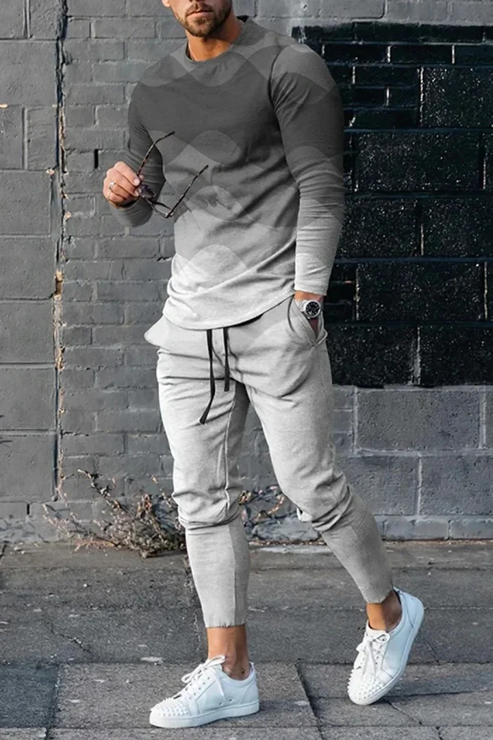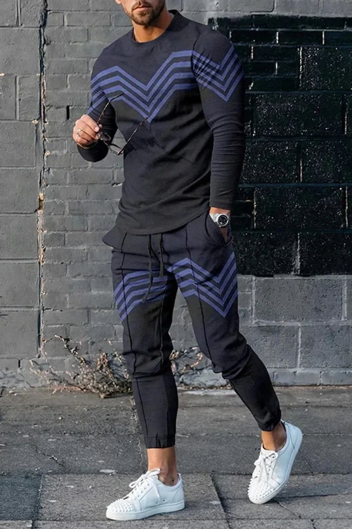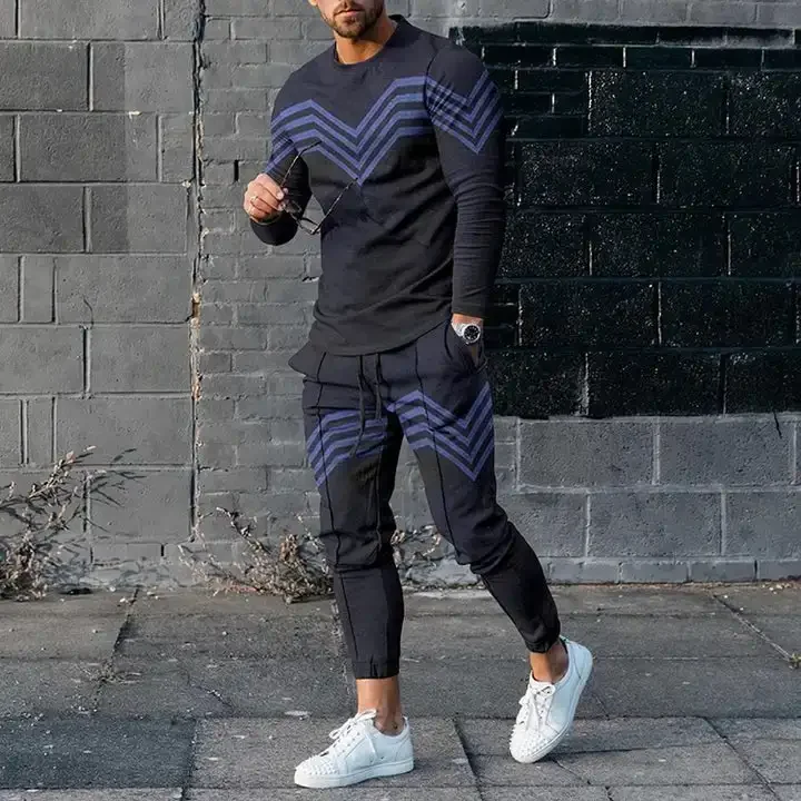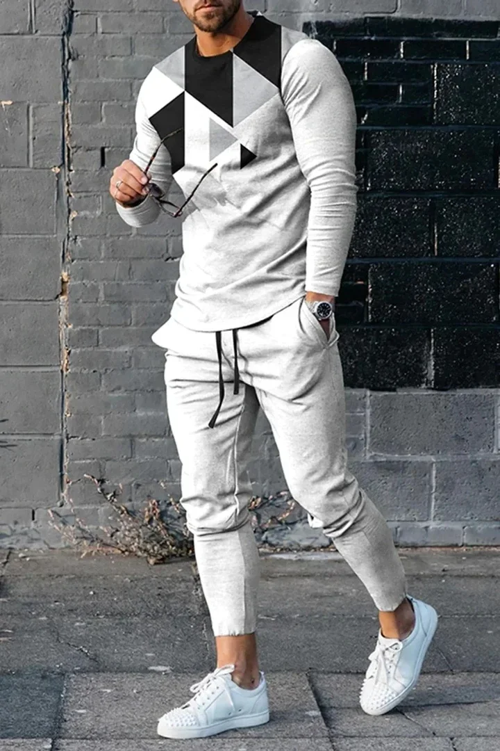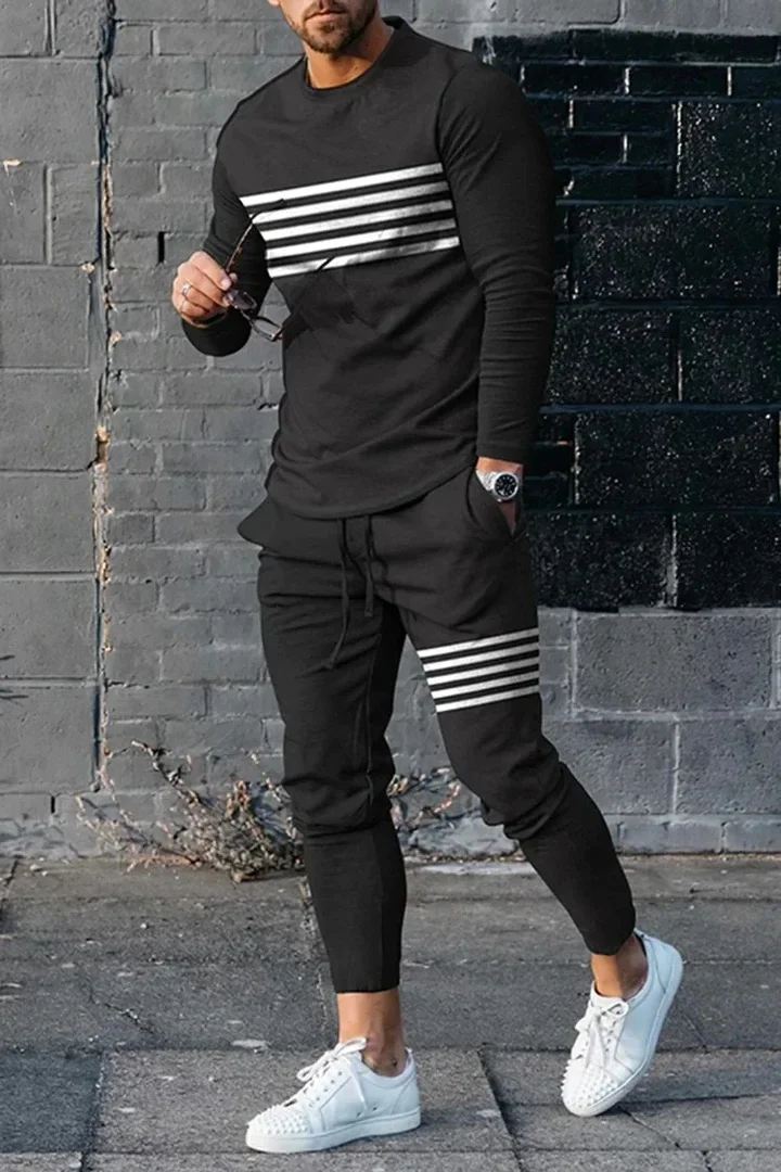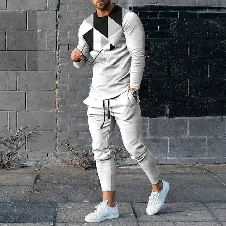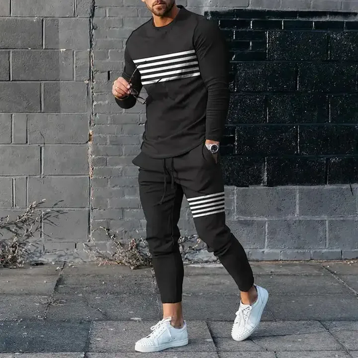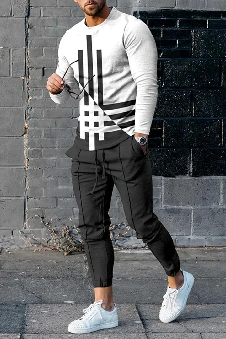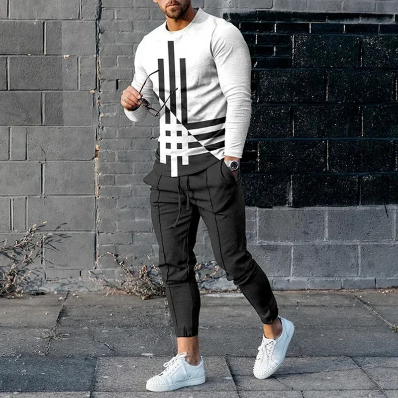 T-shirt e pantaloni a maniche lunghe da uomo due pezzi nero bianco classico stampato in 3D completo Casual da uomo nike tech fleece 1T-shirt e pantaloni a maniche lunghe da uomo due pezzi nero bianco classico stampato in 3D completo Casual da uomo nike tech fleece