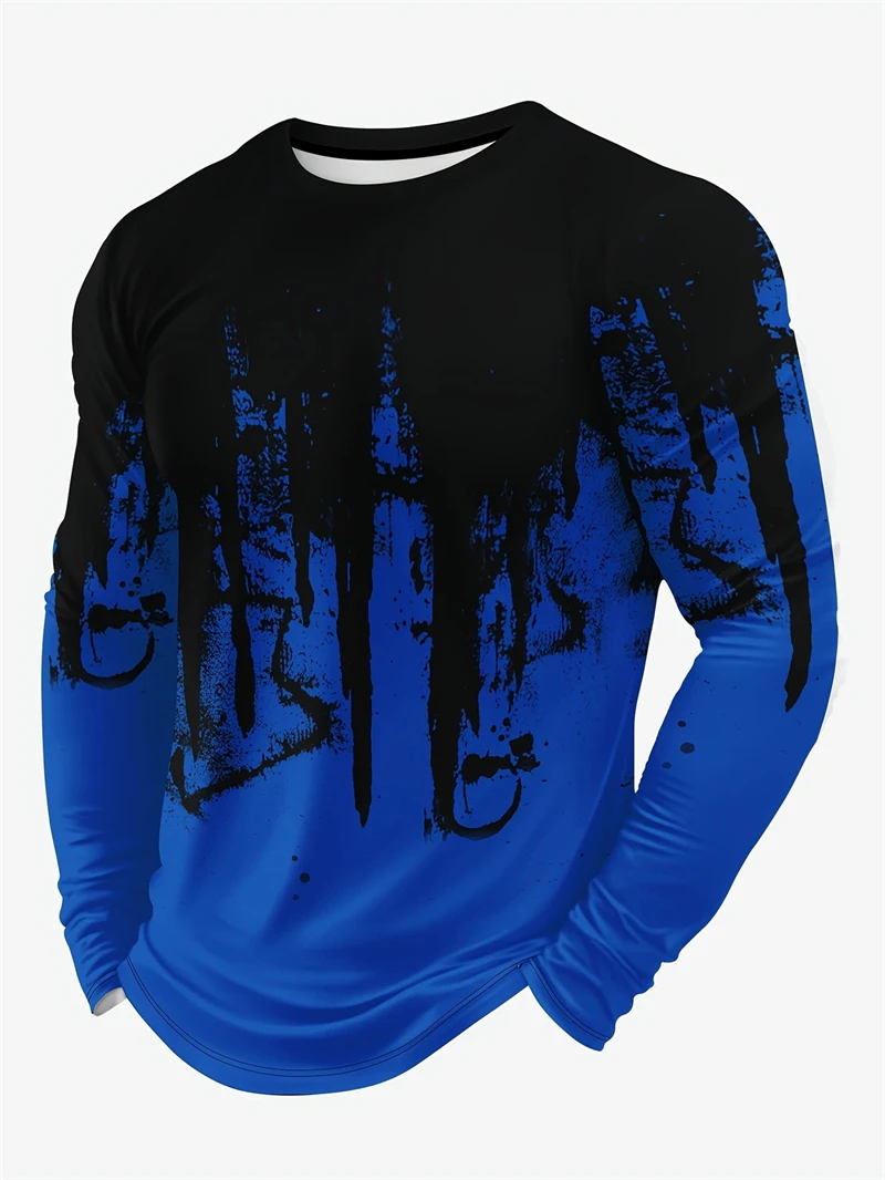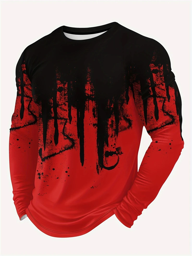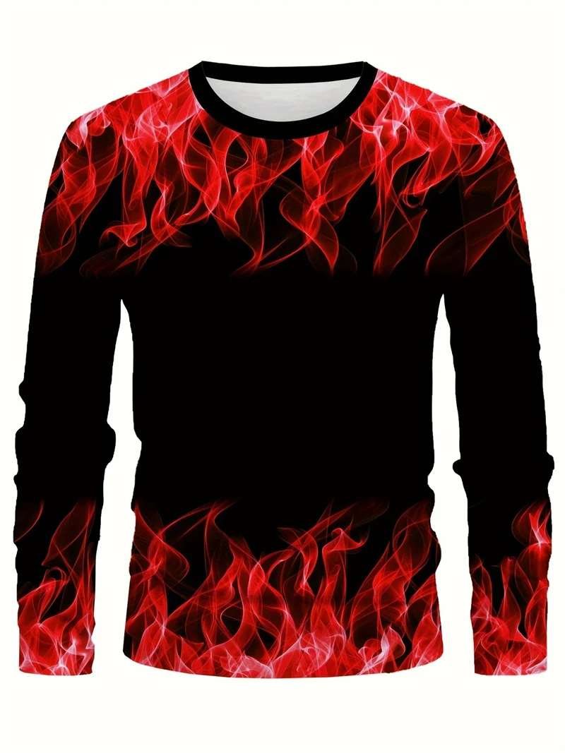 T-shirt girocollo a maniche lunghe stampata con fiamma 3D da uomo in tessuto lavorato a maglia da uomo primavera autunno Street Style manica lunga abbigliamento da uomo