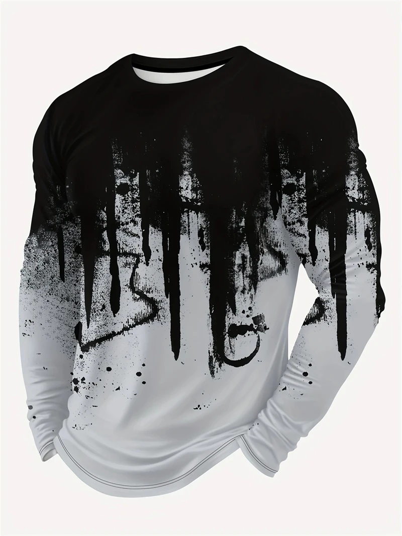 T-shirt girocollo a maniche lunghe stampata con fiamma 3D da uomo in tessuto lavorato a maglia da uomo primavera autunno Street Style manica lunga abbigliamento da uomo 1T-shirt girocollo a maniche lunghe stampata con fiamma 3D da uomo in tessuto lavorato a maglia da uomo primavera autunno Street Style manica lunga abbigliamento da uomo